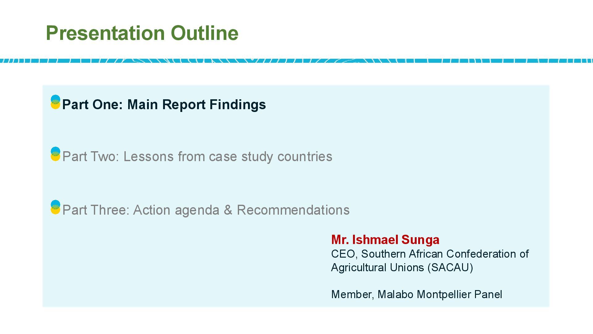 (i) Mr. Ishmael Sunga – CEO, South African Confederation of Agricultural Unions (SACAU), and Member, Malabo Montpellier Panel.