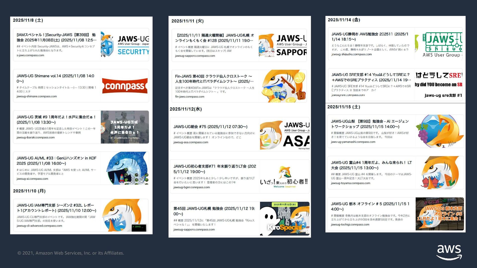 © 2021, Amazon Web Services, Inc. or its Affiliates. JAWS-UG情報を取得するために
