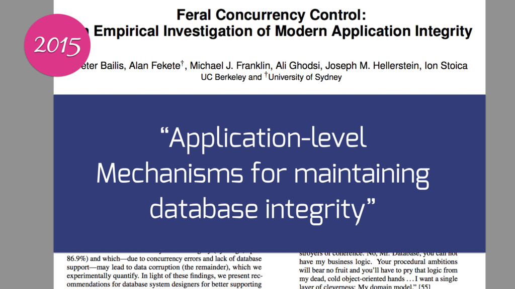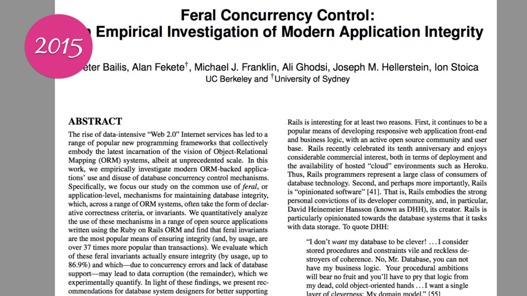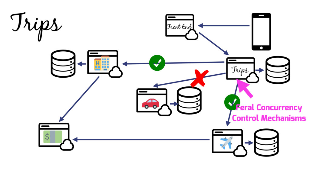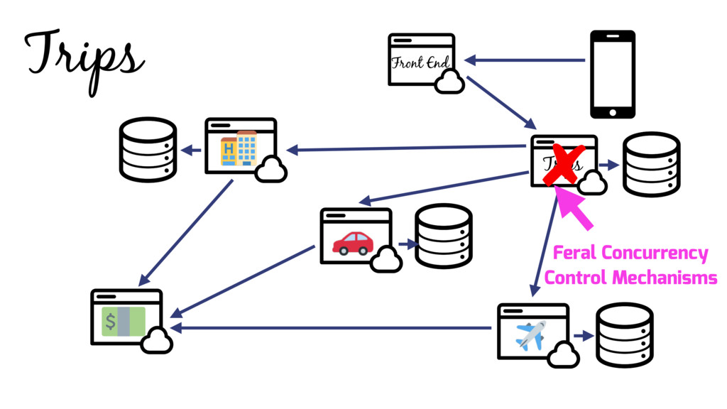 Instead developers implement feral concurrency control mechanism. This technique can be error prone, and often results in “Death Star” architectures which rely on chained calls to enforce application invariants. These architectures become more complicated over time, and are difficult to modify and extend, and often don't correctly handle all failure scenarios.