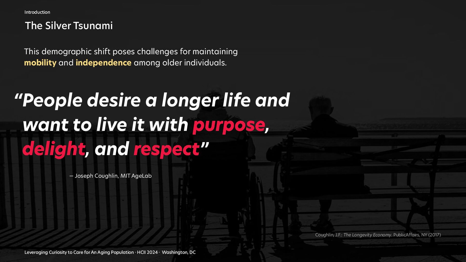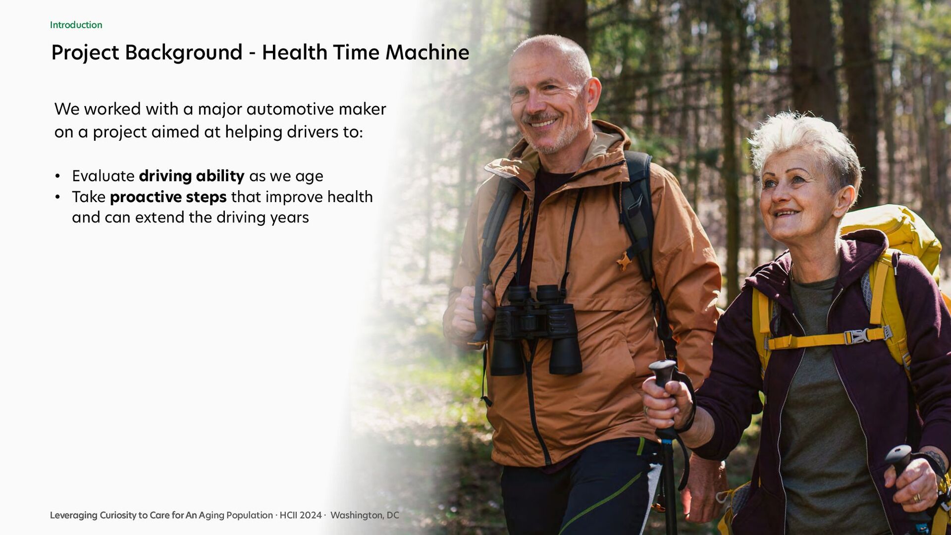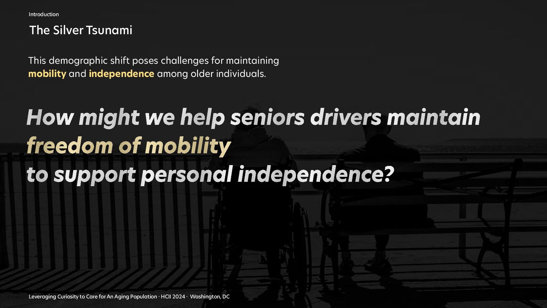The United States is experiencing a silver tsunami: an aging nation with baby boomers becoming the largest elderly population in the country's history. This demographic shift poses challenges for maintaining mobility and independence among older individuals. This paper will demonstrate an ongoing research project conducted for a major automotive maker that explores how an early research-and-development initiative might lengthen the driving years for older drivers.