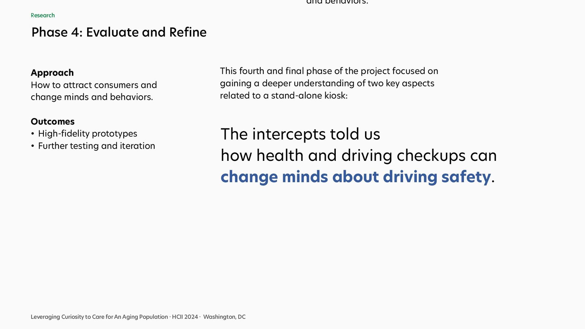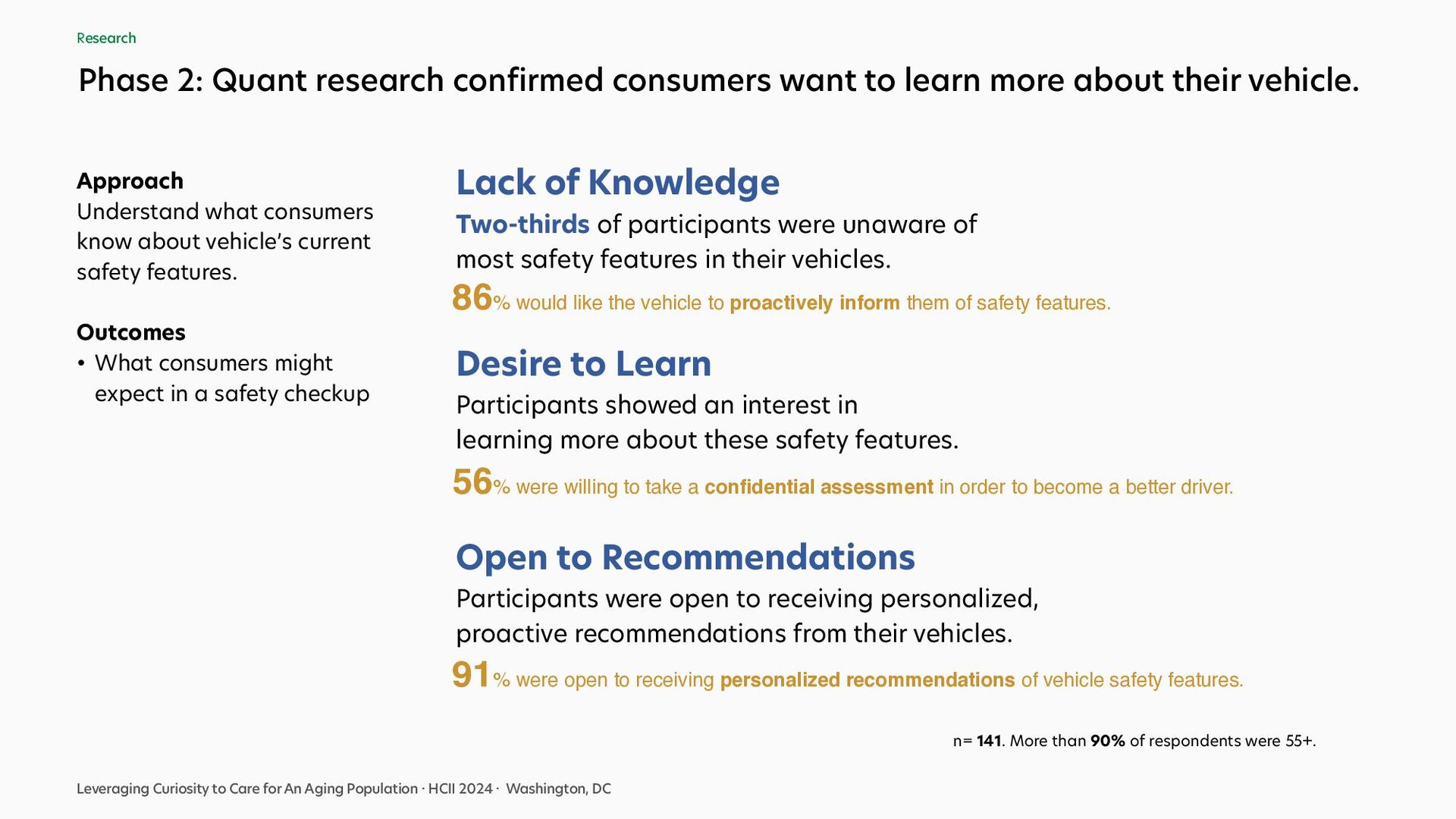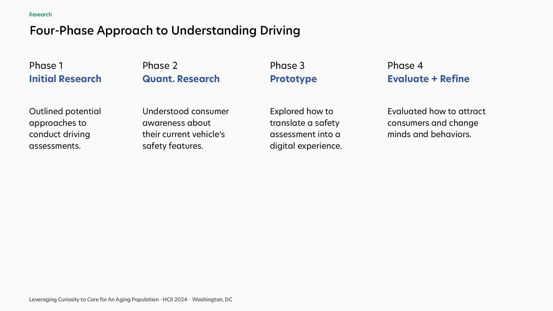 The United States is experiencing a silver tsunami: an aging nation with baby boomers becoming the largest elderly population in the country's history. This demographic shift poses challenges for maintaining mobility and independence among older individuals. This paper will demonstrate an ongoing research project conducted for a major automotive maker that explores how an early research-and-development initiative might lengthen the driving years for older drivers.