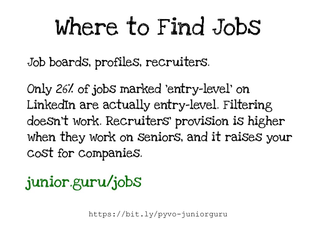 So you finished reading "Automate the Boring Stuff with Python", completed a university degree, graduated PyLadies course, or got certificates from a dozen online courses? In any way, congratulations! But what next? Where to find entry-level jobs? How do you know you're ready to start applying? How can you prepare? If these are the questions that won't let you sleep, listen to this talk!