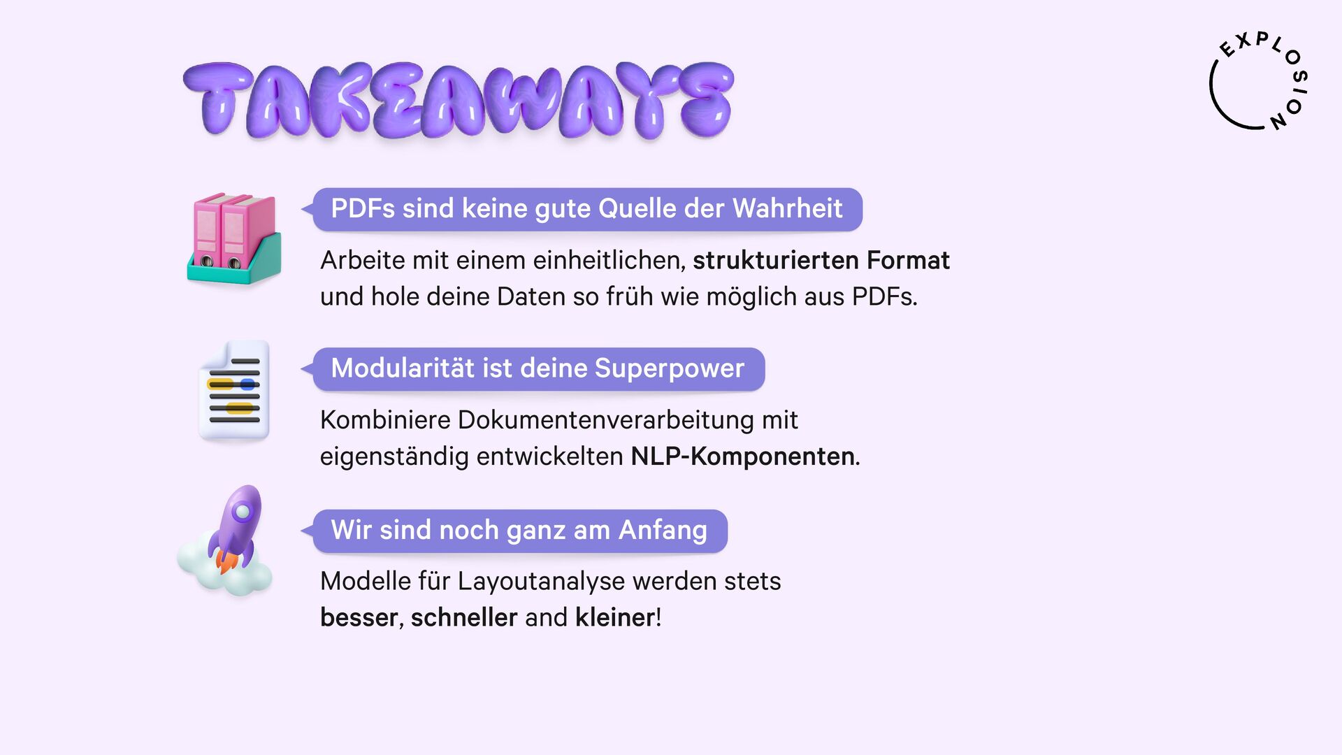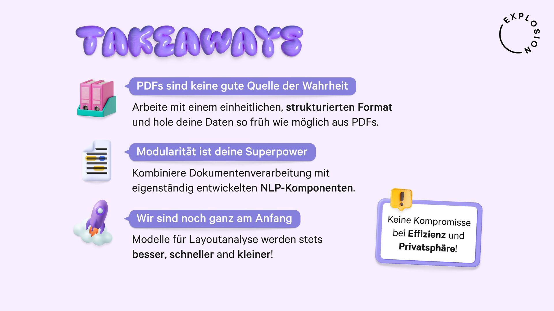 NLP und Data Science könnten so einfach sein, wenn all unsere Daten als sauberer, reiner Text vorlägen. Doch in der Praxis sind sie meist versteckt in PDFs, Word-Dokumenten, Scans und anderen Formaten, deren Verarbeitung sich als Albtraum erwiesen hat. In diesem Talk präsentiere ich einen neuen, modularen Ansatz für die Entwicklung von robusten Systemen für Dokumentenanalyse mit Hilfe von modernsten Modellen und dem großartigen Python-Ökosystem. Ich zeige, wie wir von PDFs zu strukturierten Daten gelangen und sogar vollständig benutzerdefinierte Informationsextraktions-Pipelines für spezifische Anwendungsfälle aus der Praxis erstellen können.