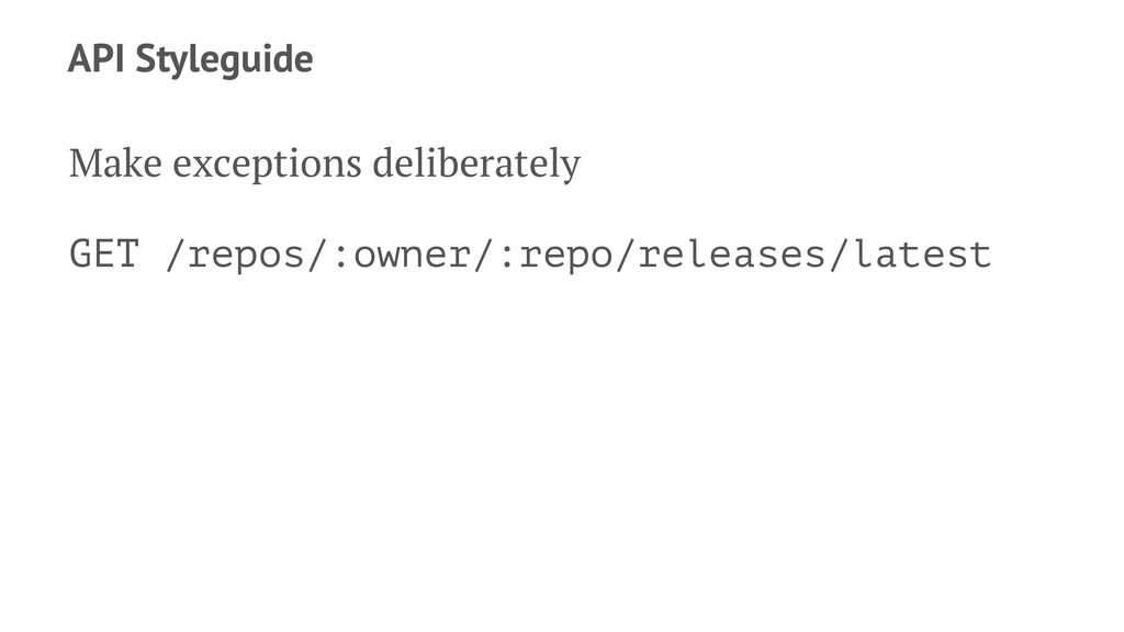 API Styleguide Make exceptions deliberately GET /repos/:owner/:repo/releases/latest