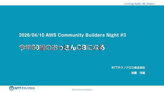 © NTT TechnoCross Corporation 今年60 歳のおっさん CB になる 2026/04/10 AWS