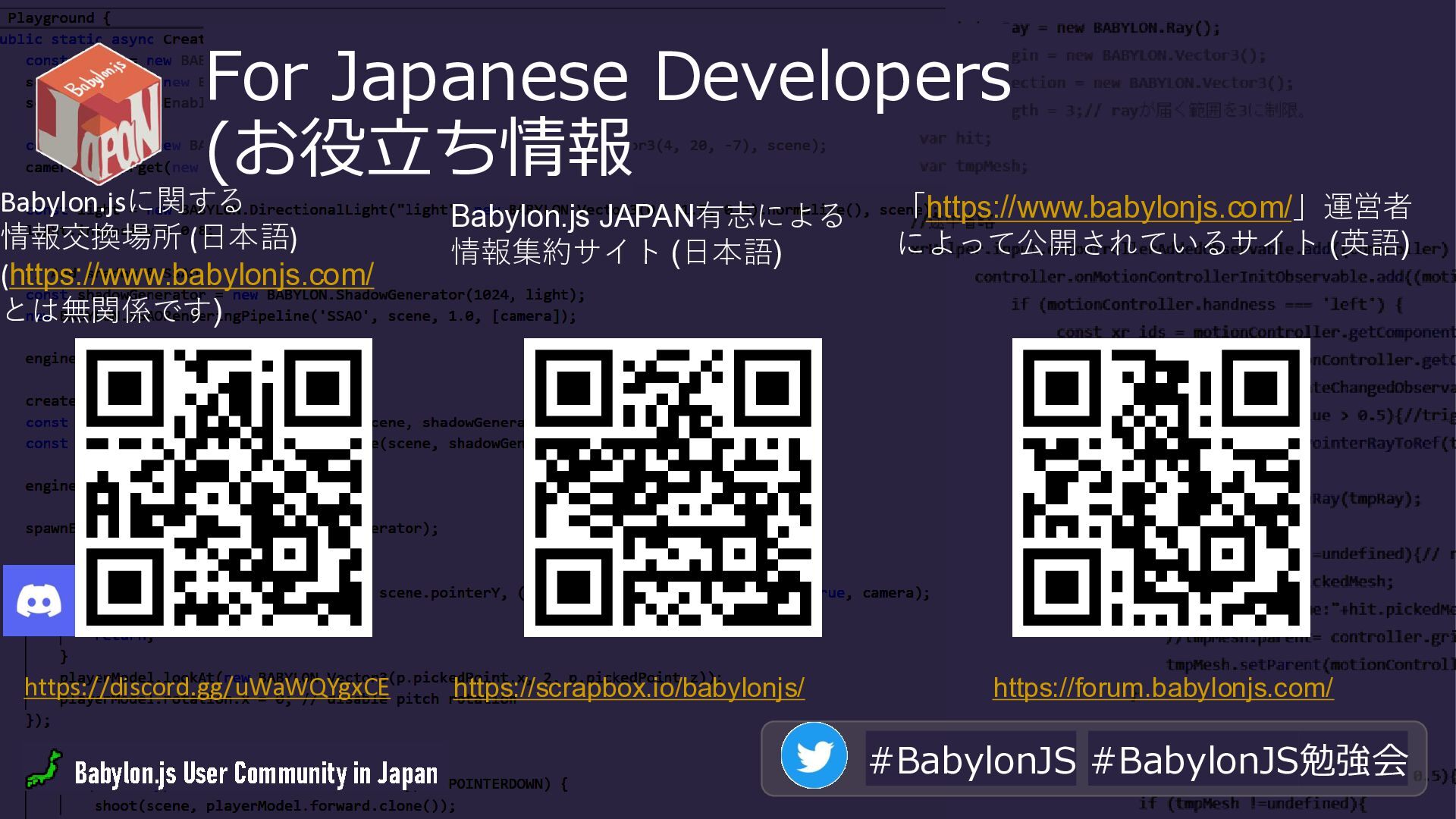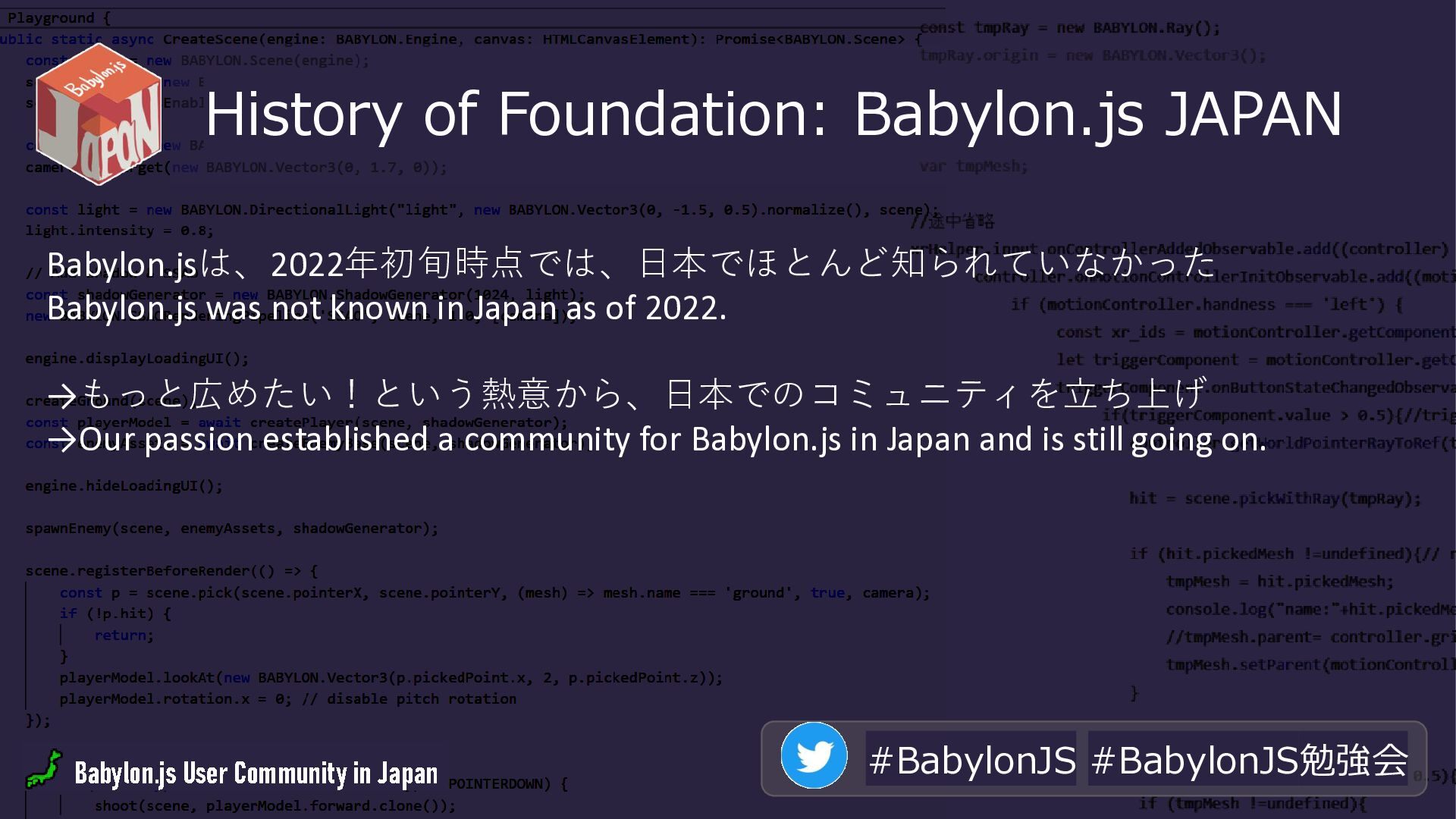 こちらのイベントに合わせて、Babylon.js Japanの活動を紹介しました。