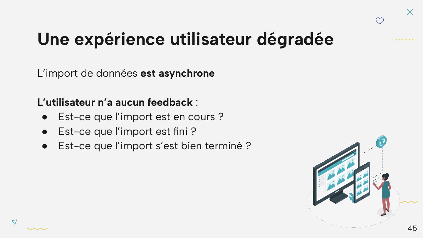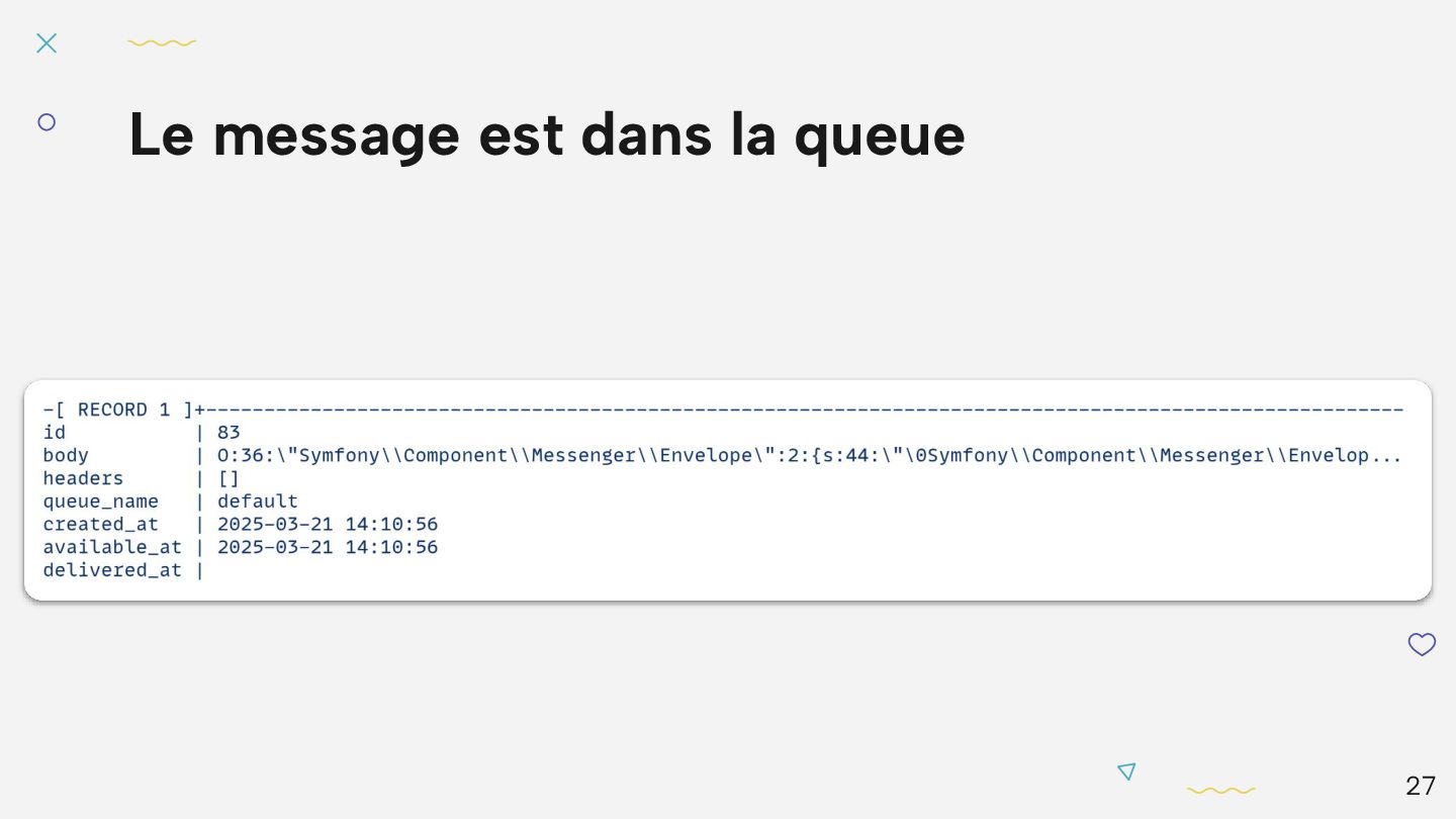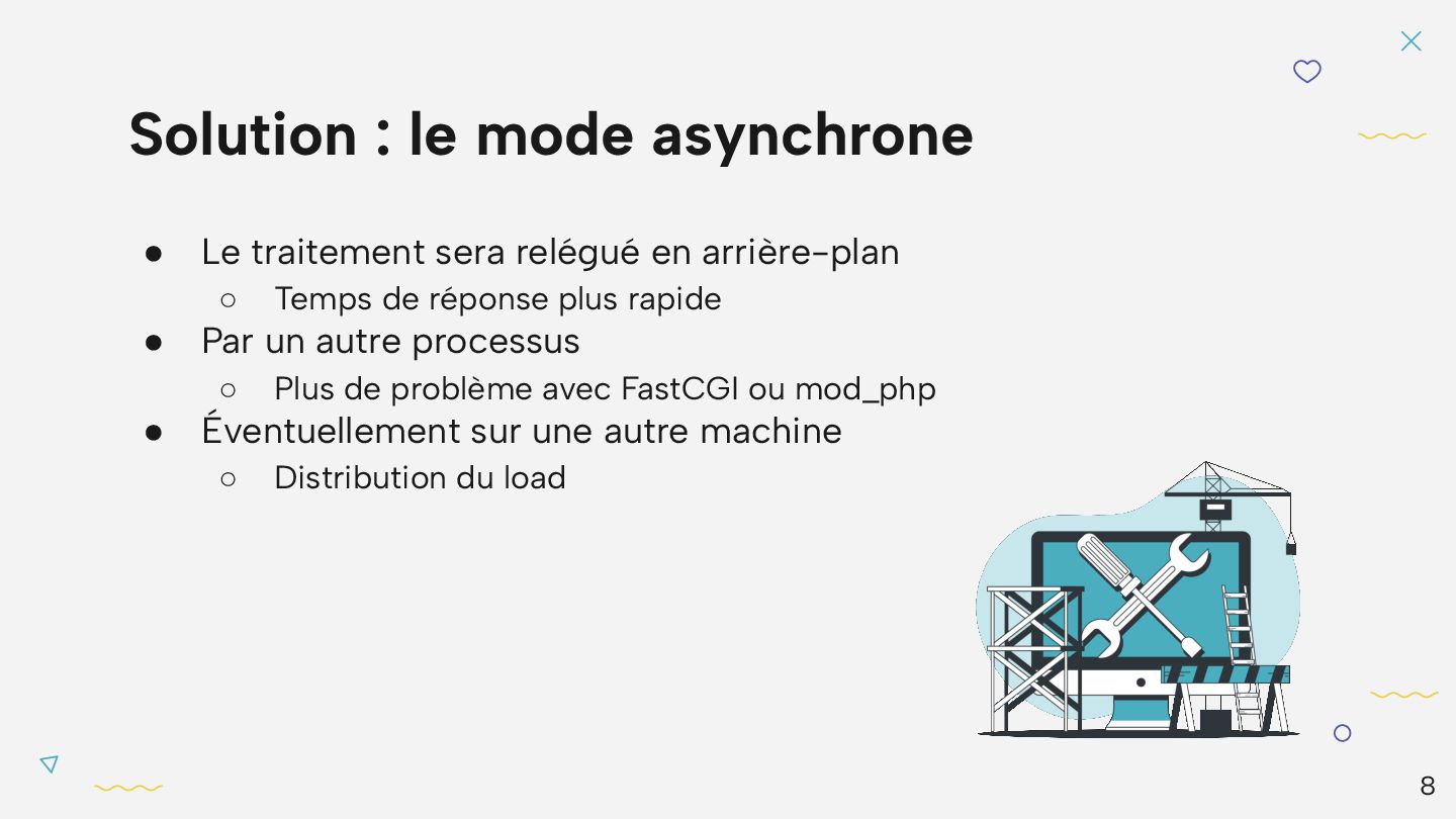 Pour pallier ce problème nous pouvons avoir recours à l'utilisation d'un système de asynchrone. Le composant Messenger sera un super allier pour nous faciliter cette tache.