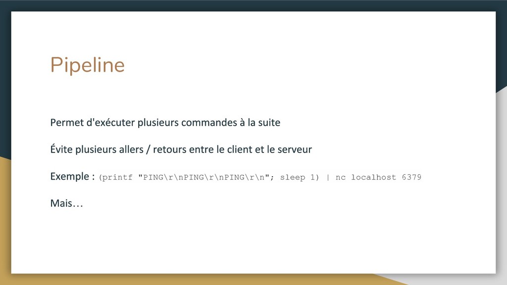Pipeline (printf "PING\r\nPING\r\nPING\r\n"; sleep 1) | nc localhost 6379 …