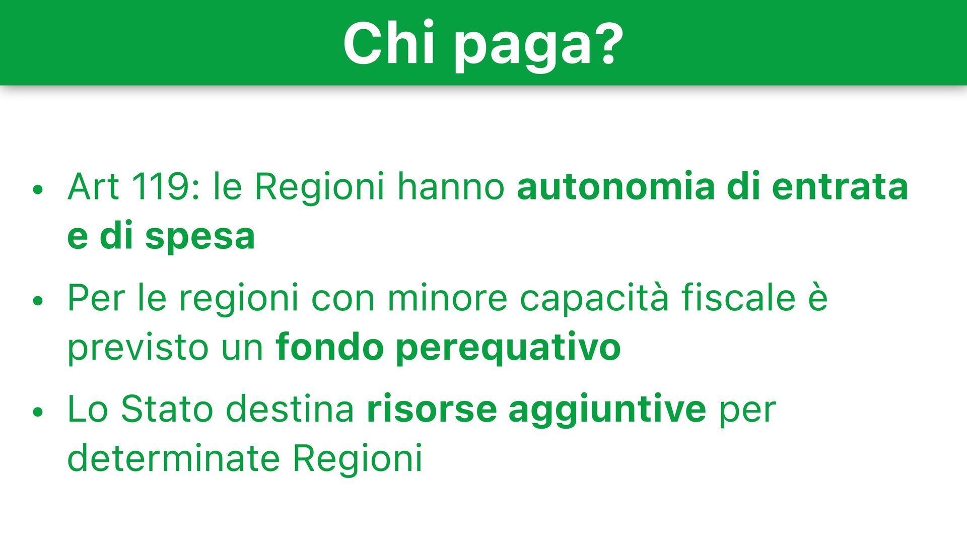 entrata e di spesa • Per le regioni con minore capacità fiscale è previsto un fondo perequativo • Lo Stato destina risorse aggiuntive per determinate Regioni