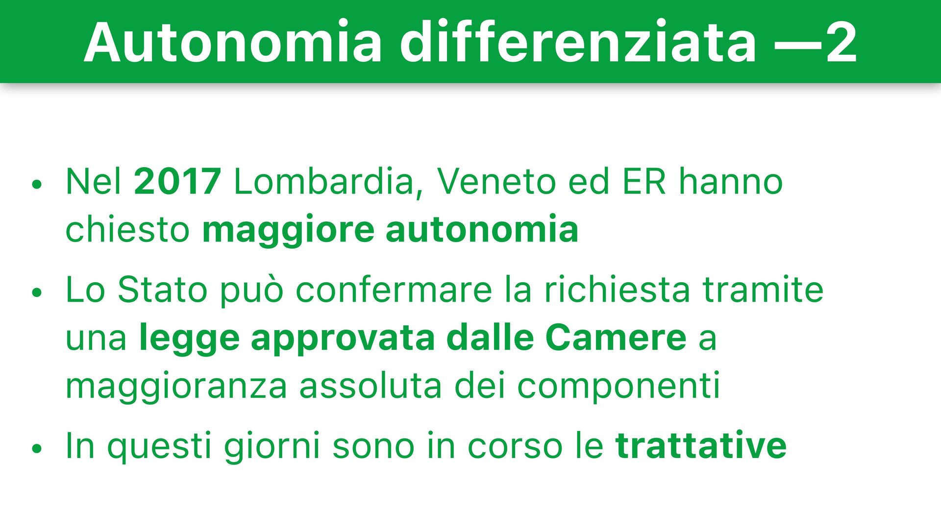 hanno chiesto maggiore autonomia • Lo Stato può confermare la richiesta tramite una legge approvata dalle Camere a maggioranza assoluta dei componenti • In questi giorni sono in corso le trattative