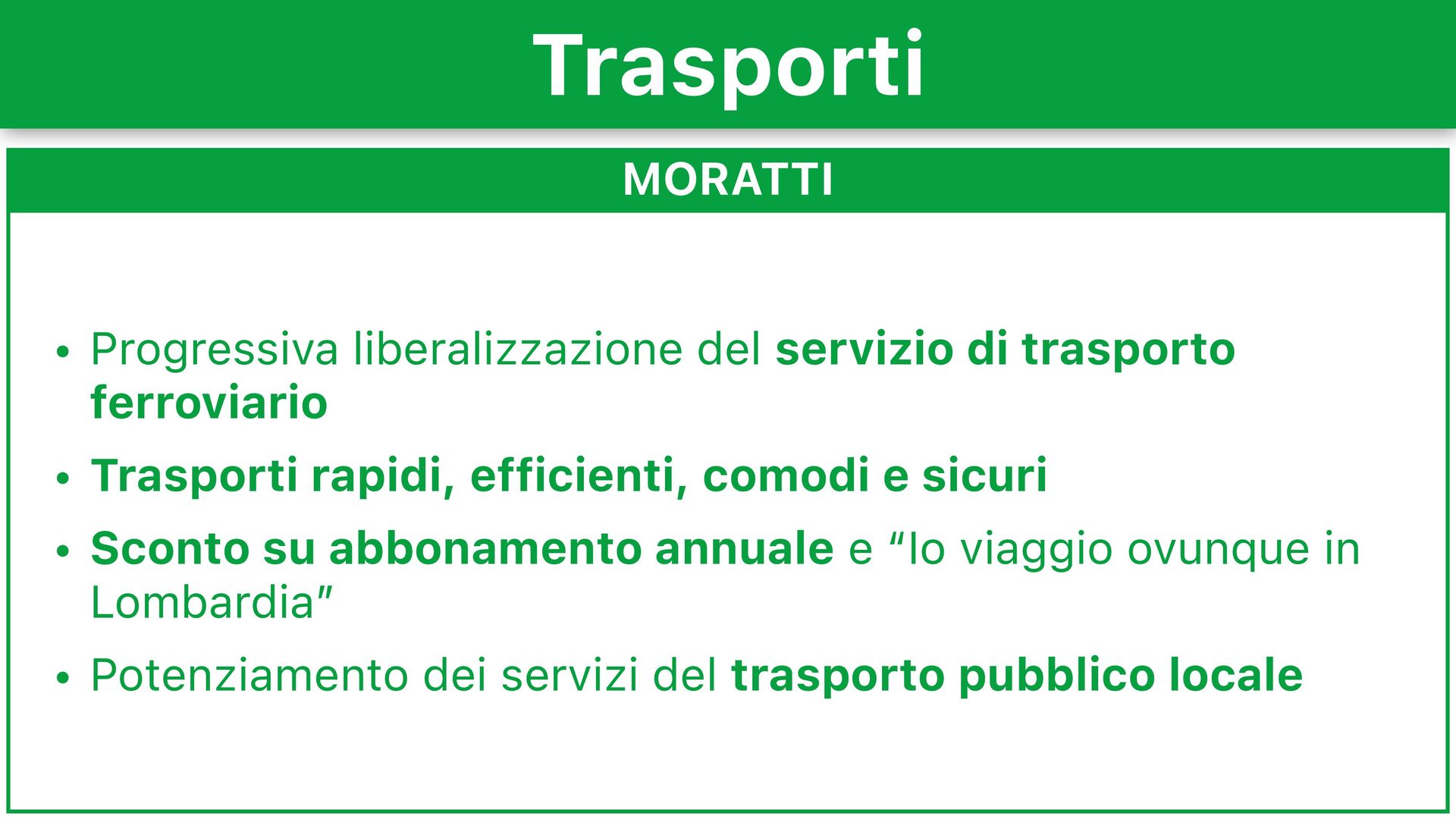 Trasporti rapidi, efficienti, comodi e sicuri • Sconto su abbonamento annuale e “Io viaggio ovunque in Lombardia” • Potenziamento dei servizi del trasporto pubblico locale Trasporti