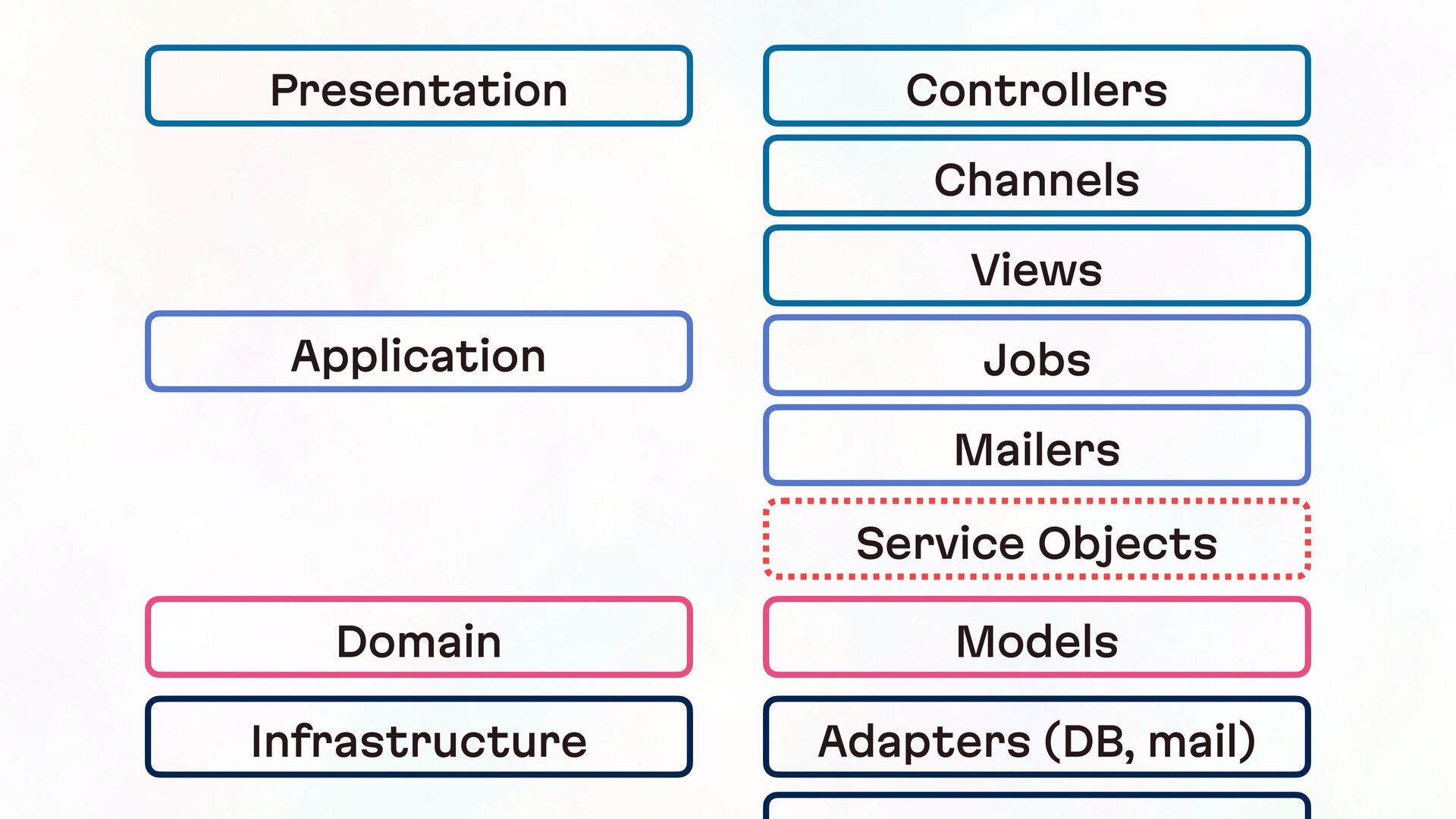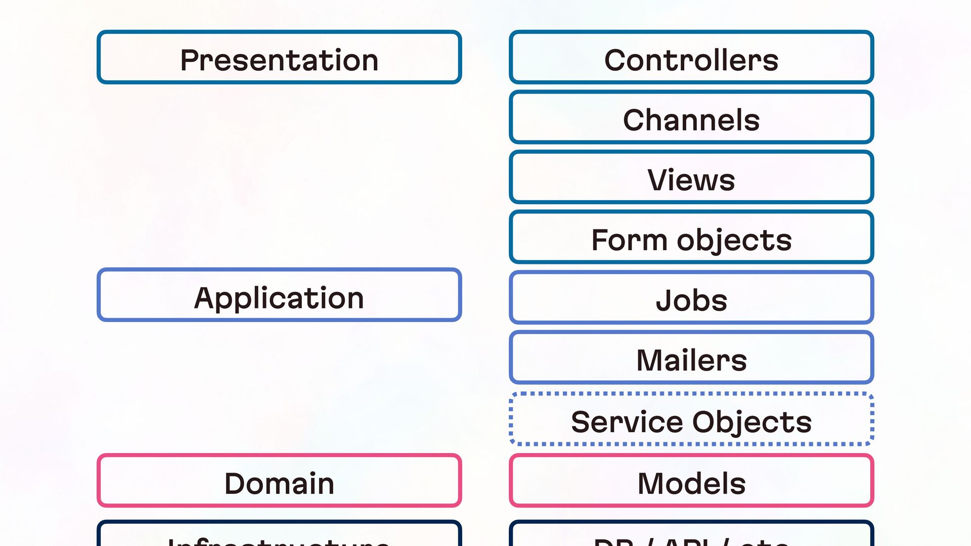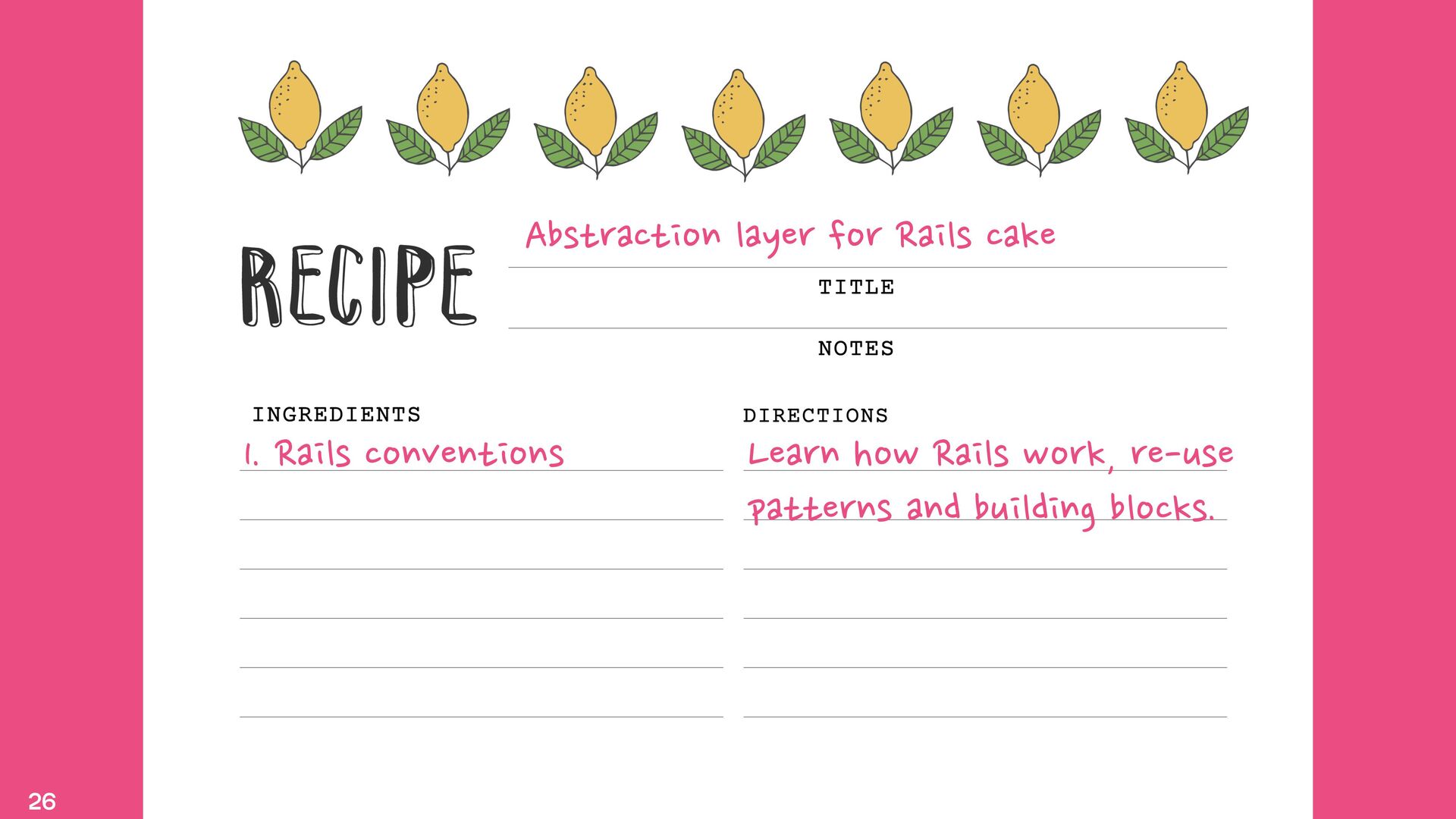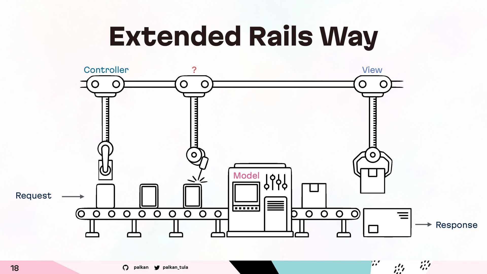 Ruby on Rails as a framework follows the Model-View-Controller design pattern. Three core elements, like the number of layers in a traditional birthday cake, are enough to “cook” web applications. However, on the long haul, the Rails cake often resembles a crumble cake with the layers smeared and crumb-bugs all around the kitchen-codebase.