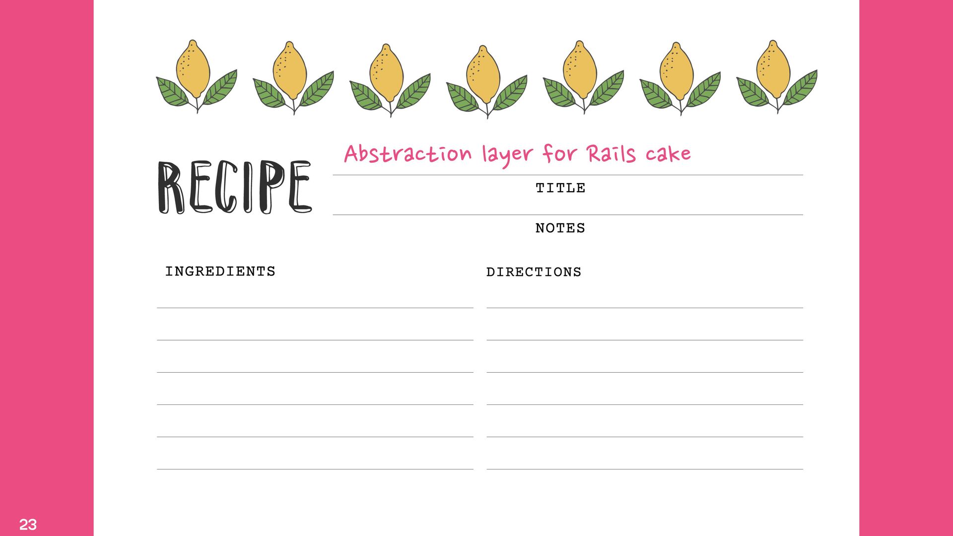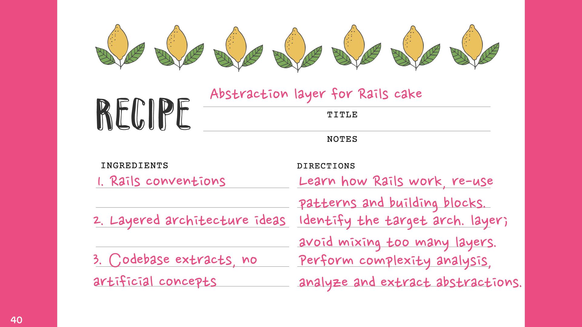 How to extract from or add new layers to a Rails application? What considerations should be taken into account? Why is rainbow cake the king of layered cakes? Join my talk to learn about the layering Rails approach to keep applications healthy and maintainable.