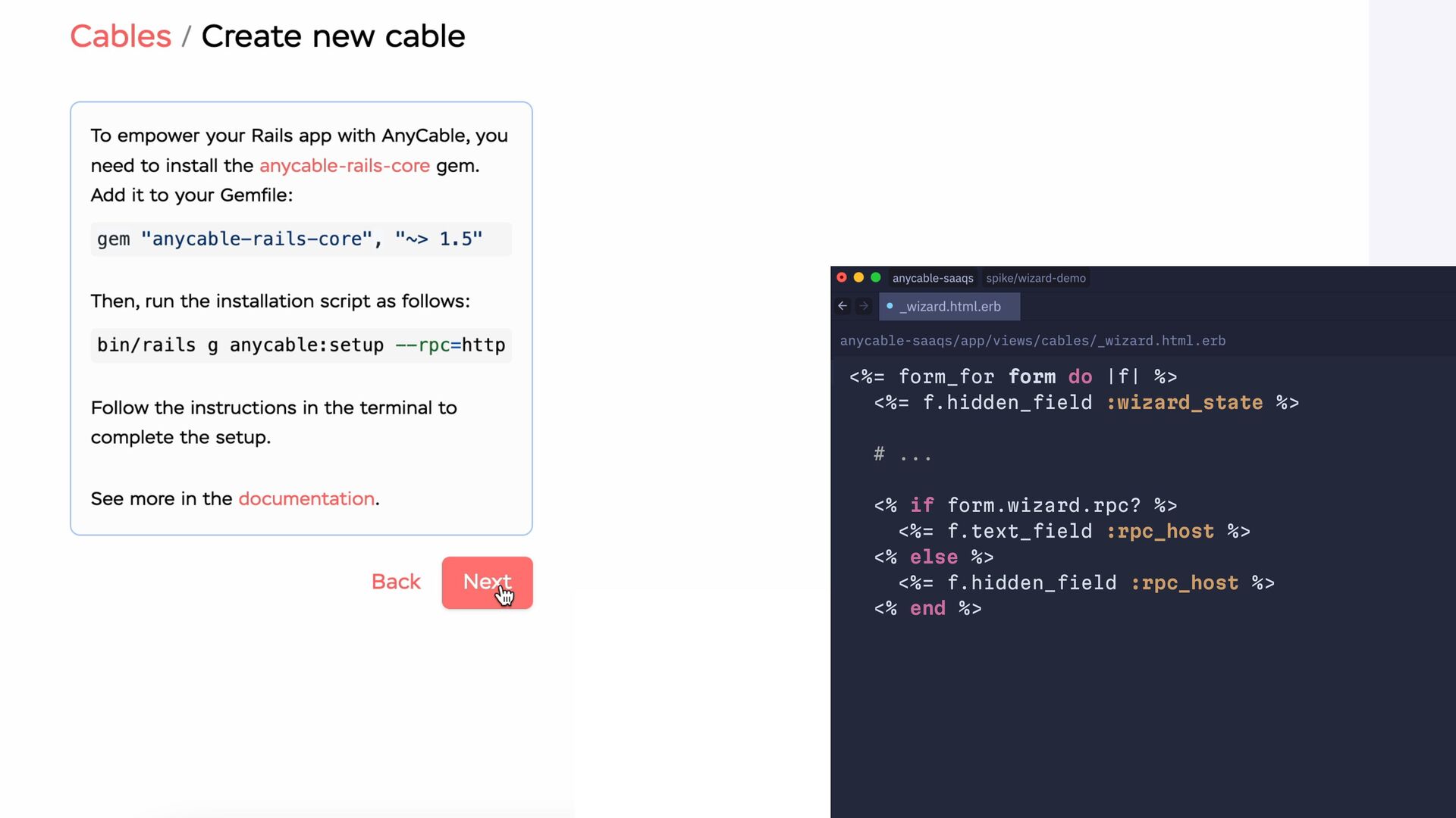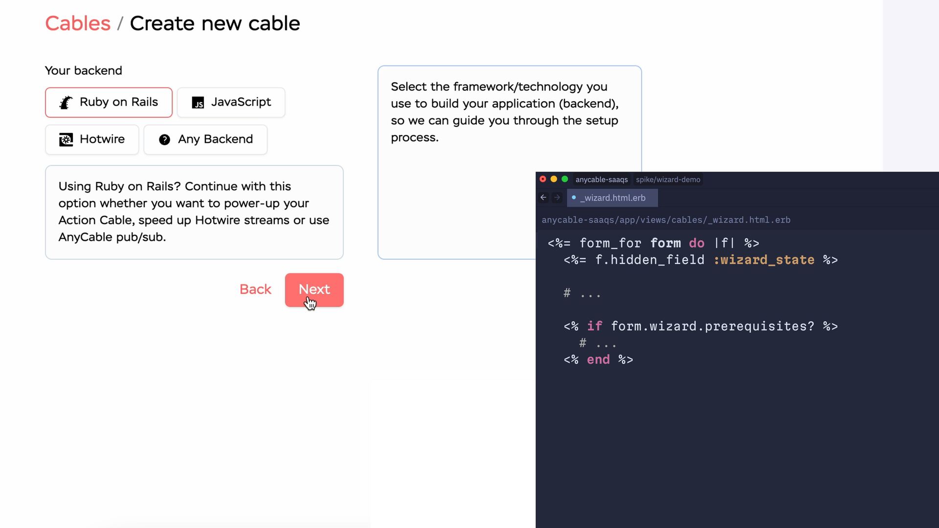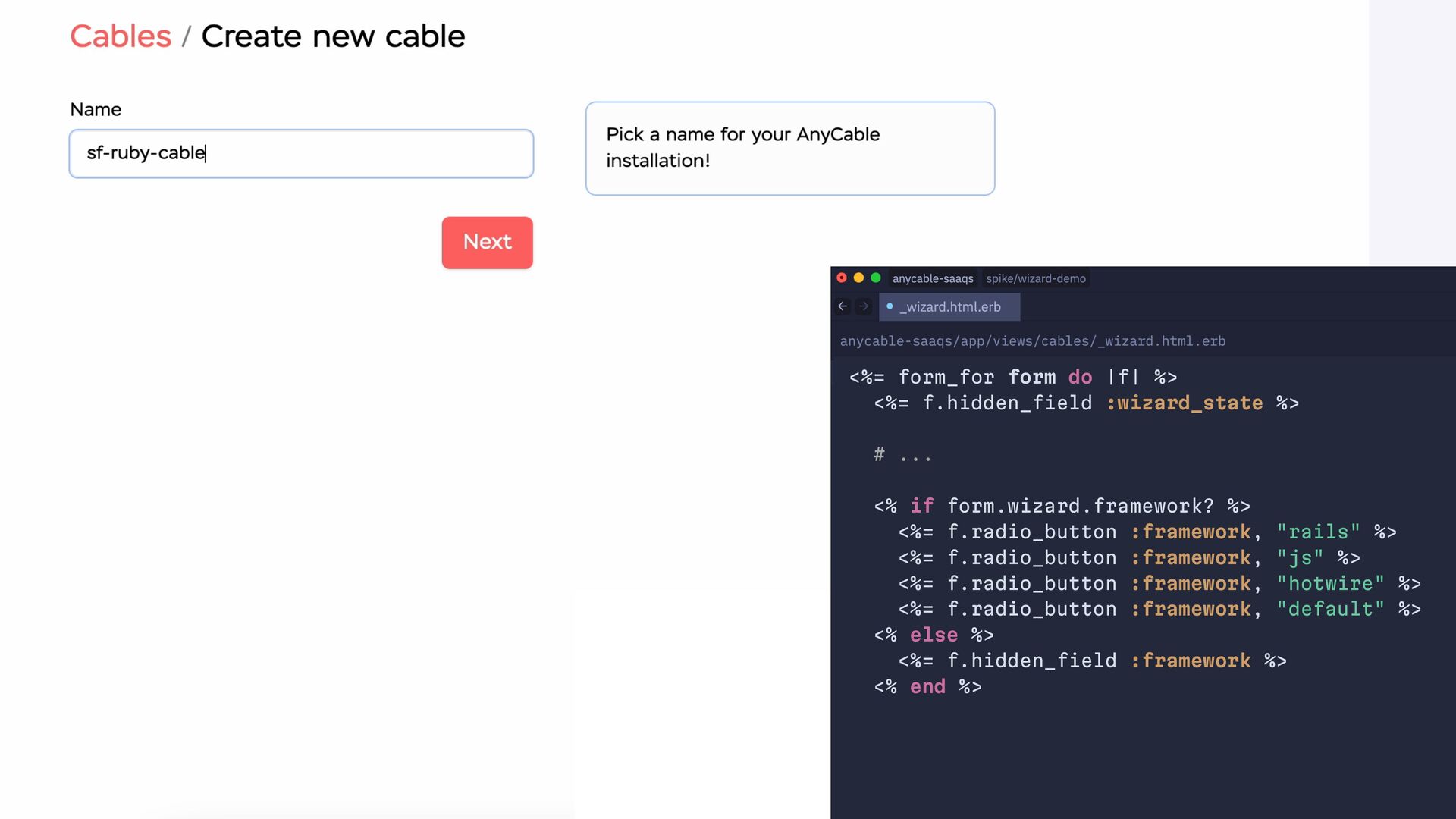 workflow do state :name do event :submit, transitions_to: :framework end state :framework do event :submit, transitions_to: :rpc, if: :needs_rpc? event :submit, transitions_to: :secrets event :back, transitions_to: :name end state :rpc do event :submit, transitions_to: :secrets event :back, transitions_to: :framework end state :secrets do event :submit, transitions_to: :region event :back, transitions_to: :rpc, if: :needs_rpc? event :back, transitions_to: :framework end state :complete end end end end