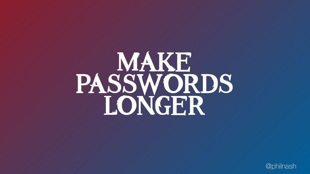 Let's take a look at how we currently protect passwords, at what we can throw away from those processes and what we can bring in to help strengthen our users' passwords. We'll investigate the tools, practices and APIs that can help us in this endeavour. Together we can move the world from "password1" to "correct horse battery staple" and beyond!