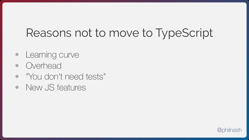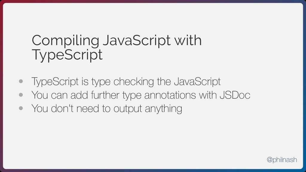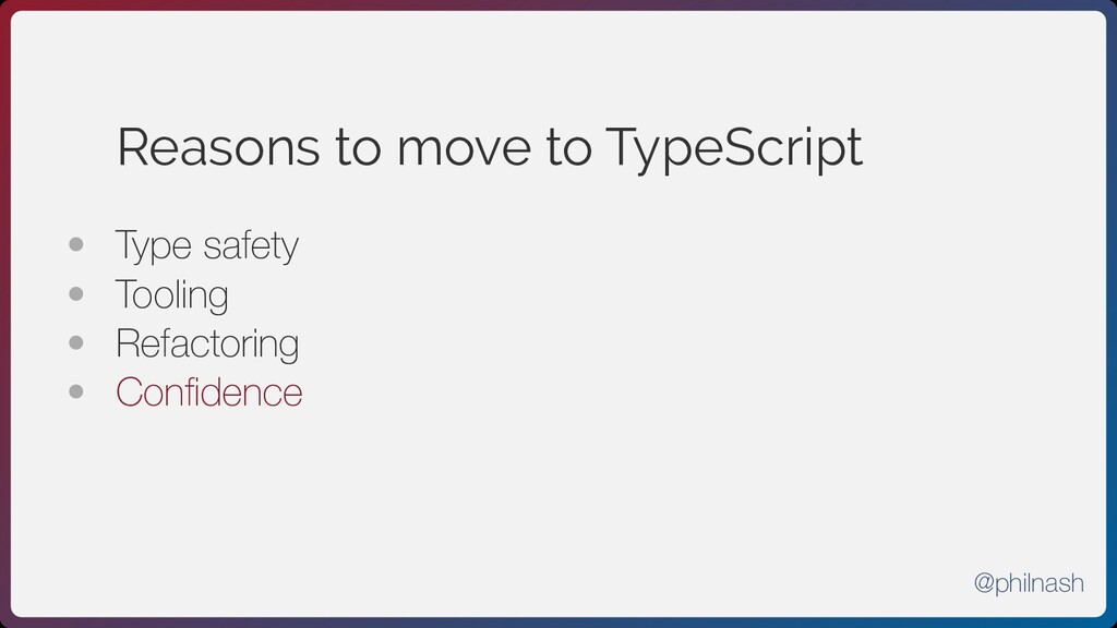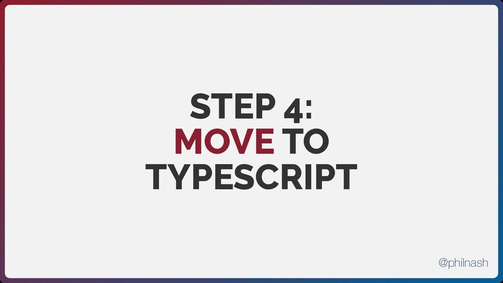 Over this talk we'll take an existing JavaScript project and move it to TypeScript, noting the new benefits we get at each step of the transition. By the end you'll have a blueprint for moving your project to TypeScript and be confident that you can go as far as you and your team needs to.