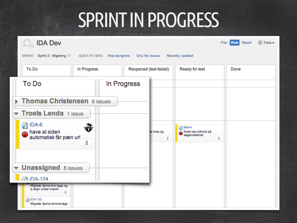 It's not easy to do Scrum and agile development in an agency. Most customers aren't used to the process, and how can you manage expectations while finding good solutions in a process that both your technical team and the customer will appreciate? I'll show you how we handle this in Reload, going from early estimations, to wireframes, breakdown into user stories, estimation hereof and the day to day workings of Jira and Greenhopper, our weapons of choice.