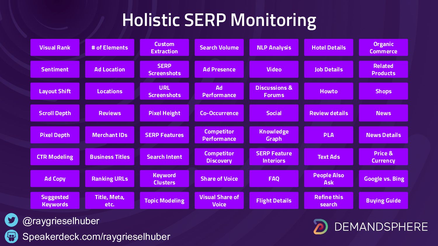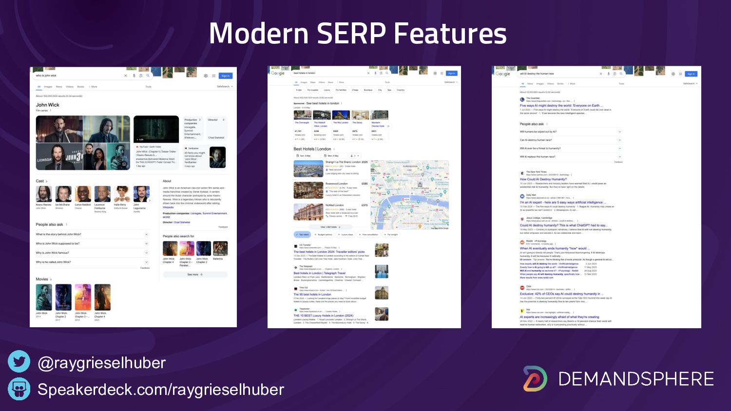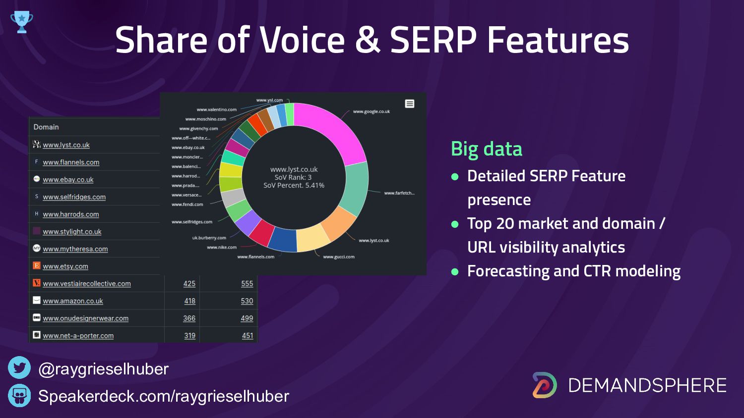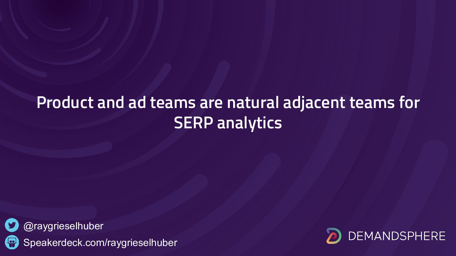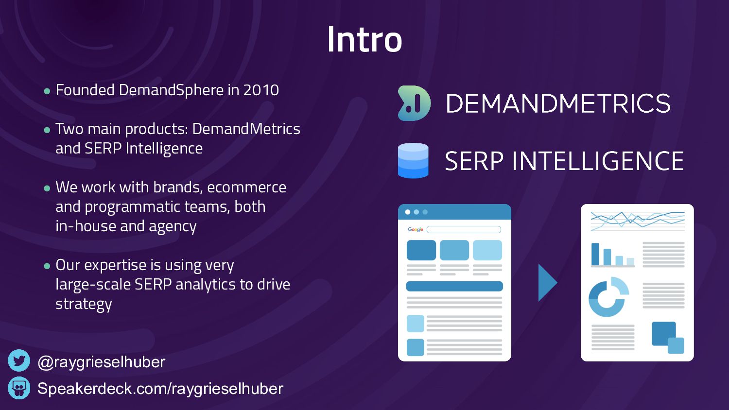 main products: DemandMetrics and SERP Intelligence • We work with brands, ecommerce and programmatic teams, both in-house and agency • Our expertise is using very large-scale SERP analytics to drive strategy