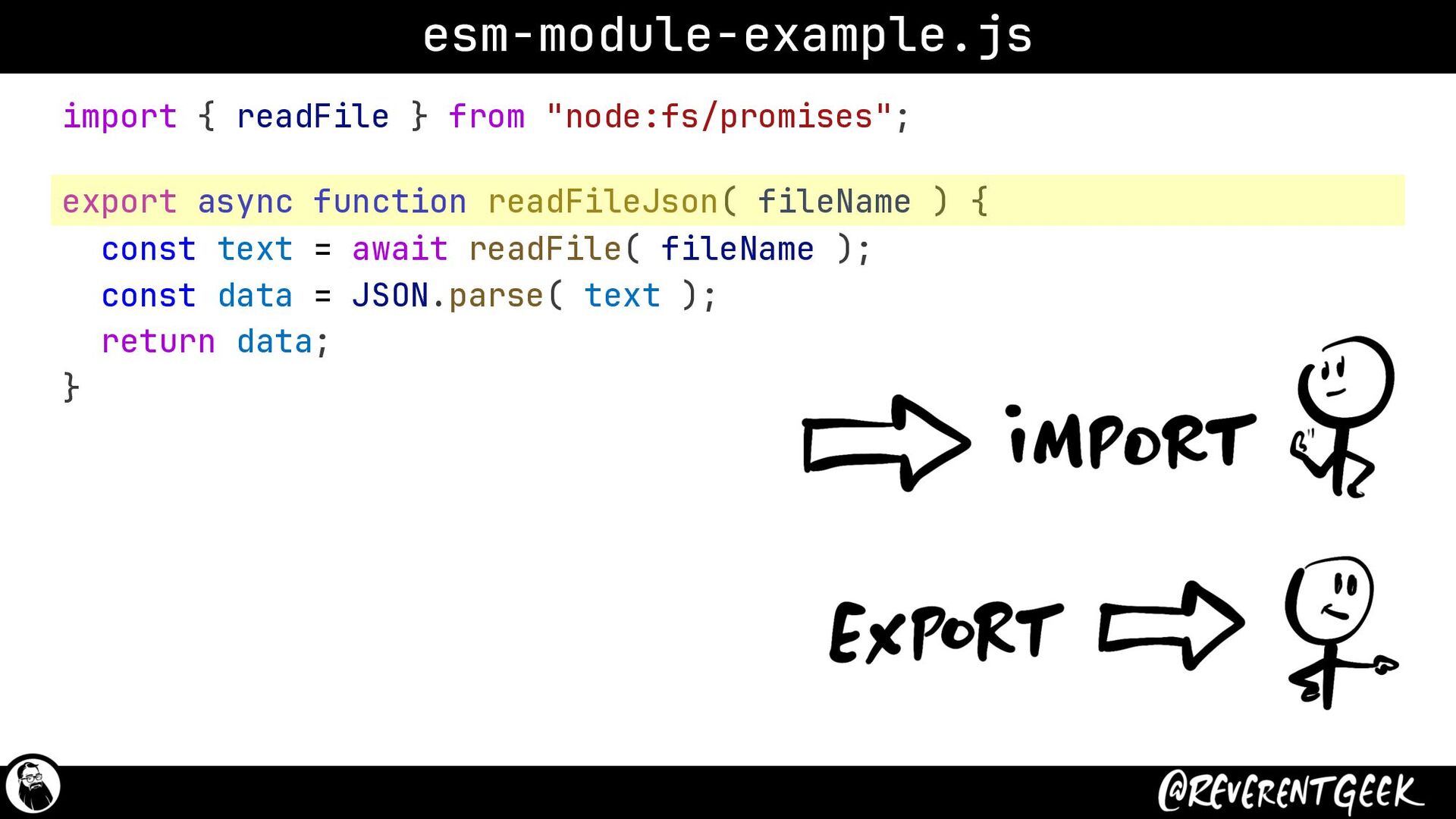 fileName ) { const text = await readFile( fileName ); const data = JSON.parse( text ); return data; } esm-module-example.js