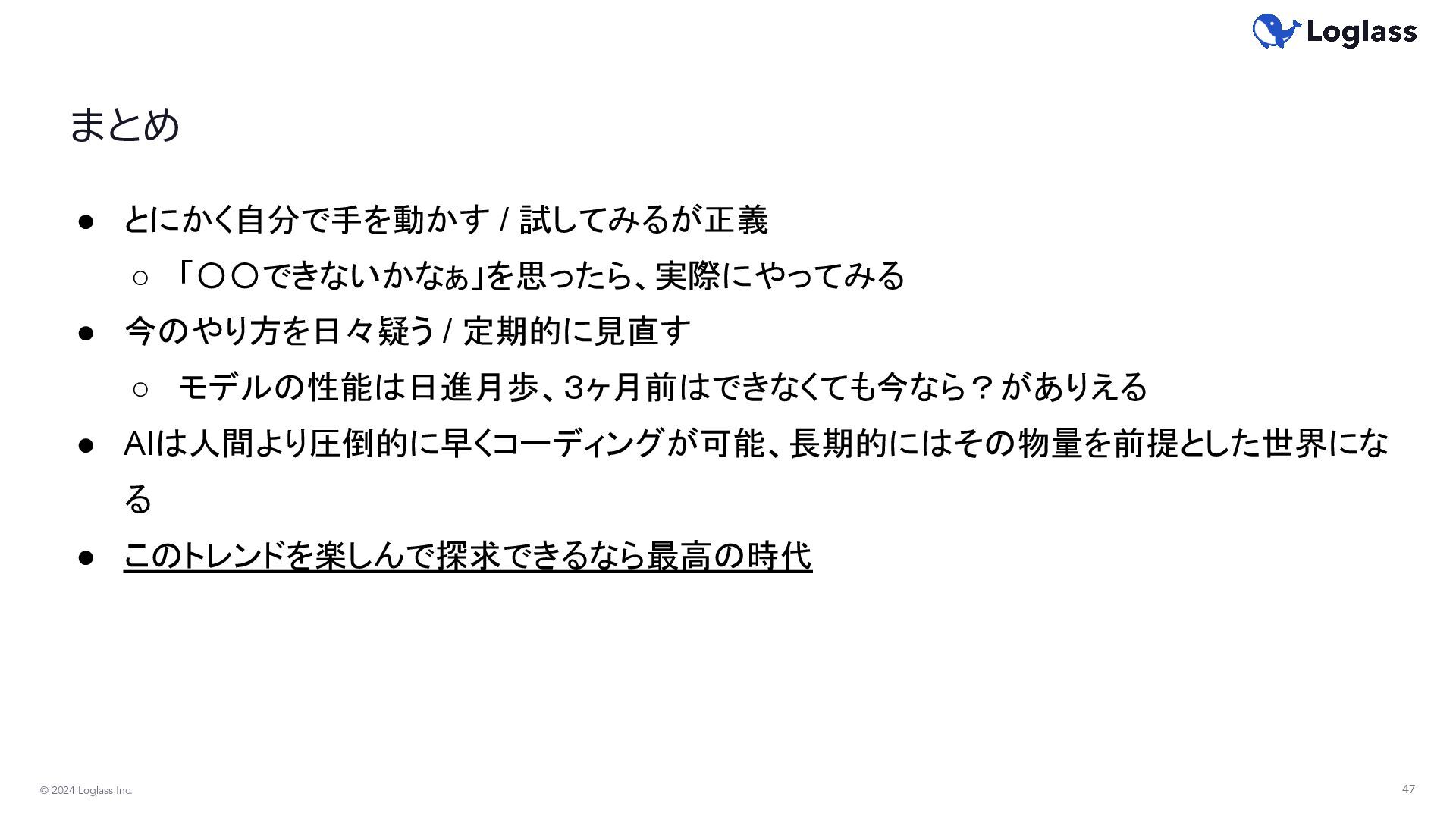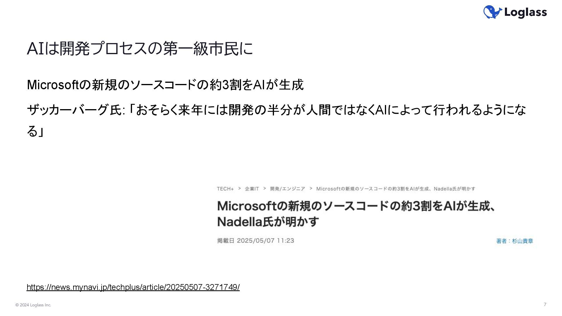 of chatter in the media that software developers will soon lose their jobs to AI. I don’t buy it. It is not the end of programming. It is the end of programming as we know it today. 訳)メディアでは、ソフトウェア開発者がすぐにAIに仕事を奪われるという噂 が広まっています。私はこれを信じません。 これはプログラミングの終わりではありません。現在知られている形での プログラミングの終わりなのです。