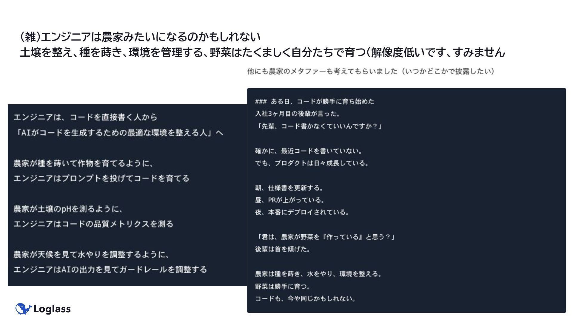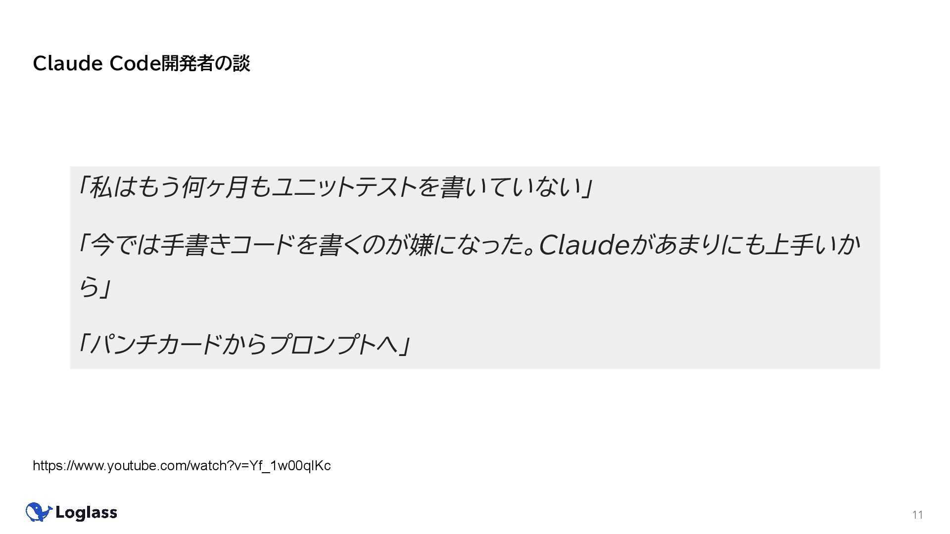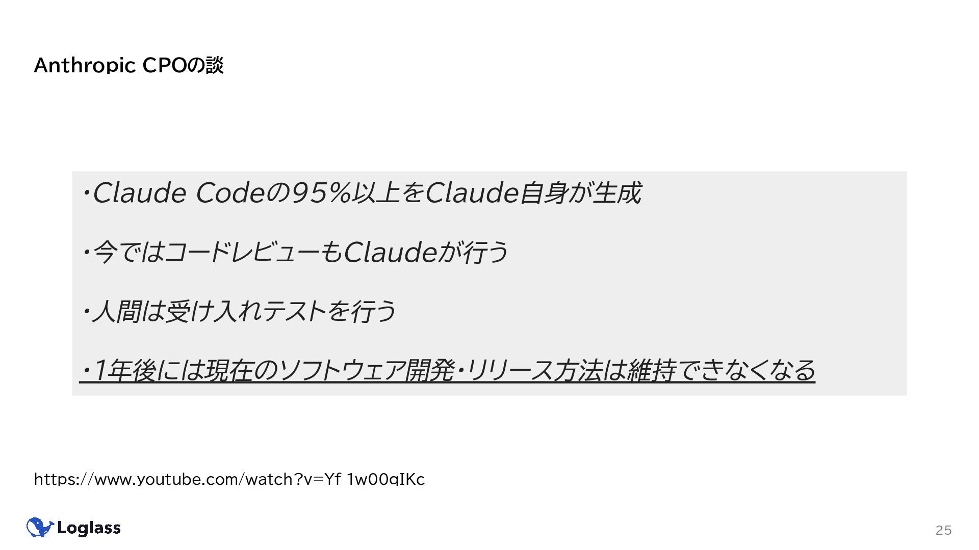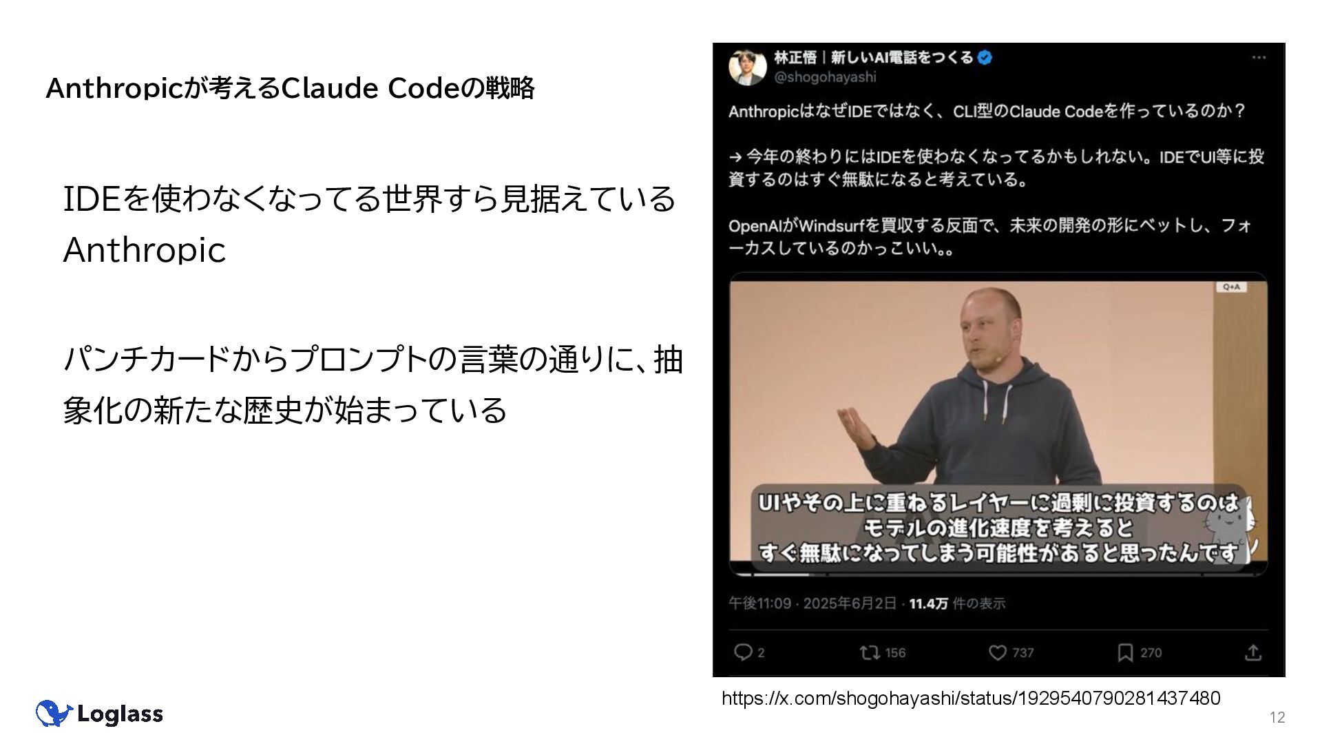 software developers will soon lose their jobs to AI. I don’t buy it. It is not the end of programming. It is the end of programming as we know it today. 訳)メディアでは、ソフトウェア開発者がすぐにAIに仕事を奪われるという噂 が広まっています。私はこれを信じません。 これはプログラミングの終わりではありません。現在知られている形でのプ ログラミングの終わりなのです。 私たちの知る開発の終わり