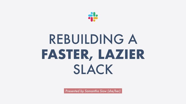 A new version of Slack is rolling out for our desktop customers, built from the ground up to be faster, more efficient, and easier to work on. In this talk, I’ll focus on our move from an eager data model to a lazily loaded and incomplete data model, and how that made for a speedier Slack experience.