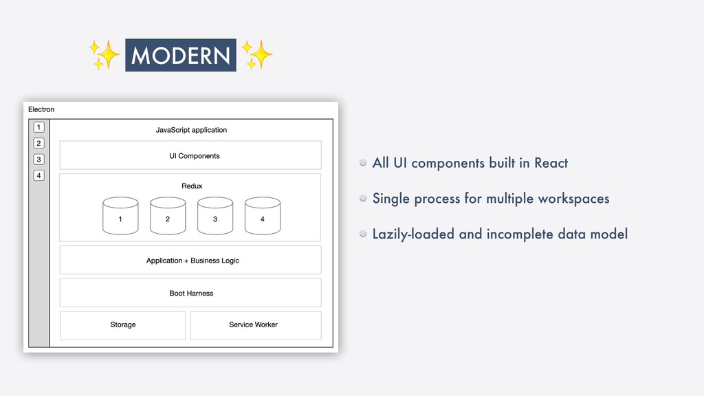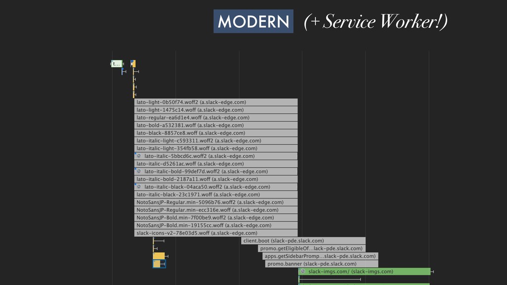When a rewrite isn’t: rebuilding Slack on the desktop Service Workers at Slack: Our Quest for Faster Boot Times and Offline Support Jim Whimpey - bit.ly/slack-sw Introducing a snappier, more efficient Slack desktop experience tiny.cc/slack-intro Slide theme: Bitter Sweet Templates for Keynote - DesiGN (https://apps.apple.com/us/app/themes-for-keynote/id935290998?mt=12) Anuj Nair - bit.ly/slack-gantry Gantry: Slack’s Fast-booting Frontend Framework Anuj Nair - bit.ly/slack-sonic Sonic: A Slack Modernization Project