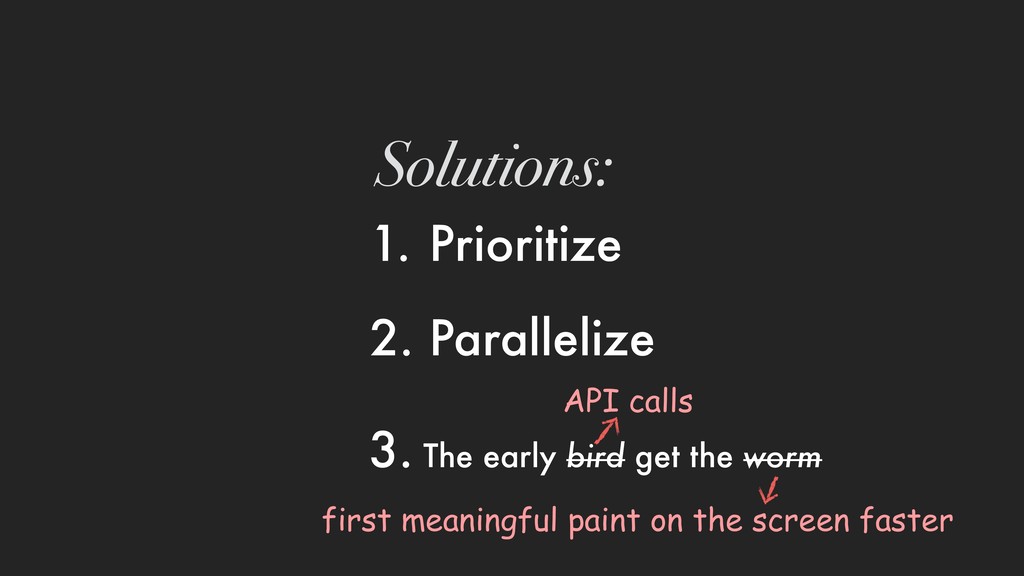 5. 1. Prioritize 2. Parallelize Solutions: 3. The early bird get