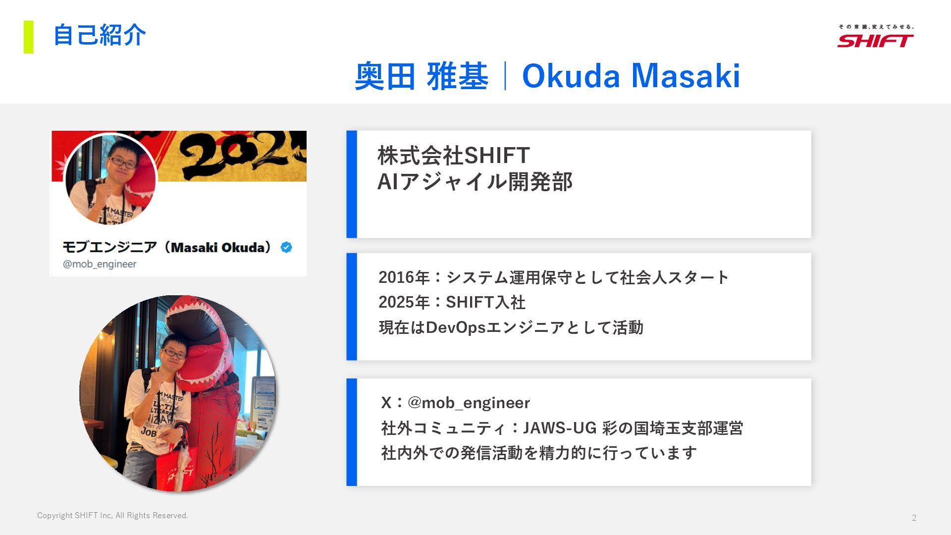 株式会社SHIFT AIアジャイル開発部 DevOpsエンジニア 奥田 雅基