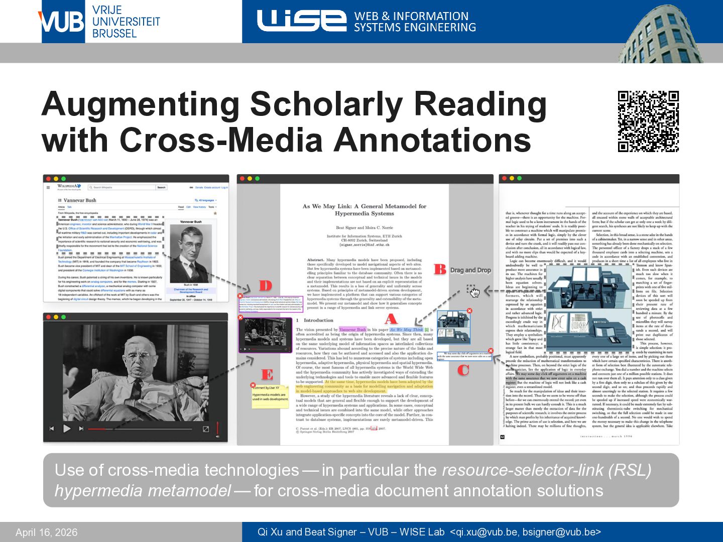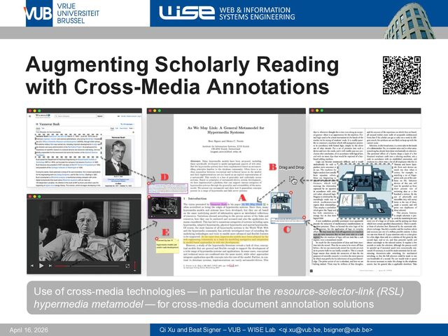 <[email protected], [email protected]> April 16, 2026 Augmenting Scholarly Reading with Cross-Media Annotations Use of cross-media technologies — in particular the resource-selector-link (RSL) hypermedia metamodel — for cross-media document annotation solutions