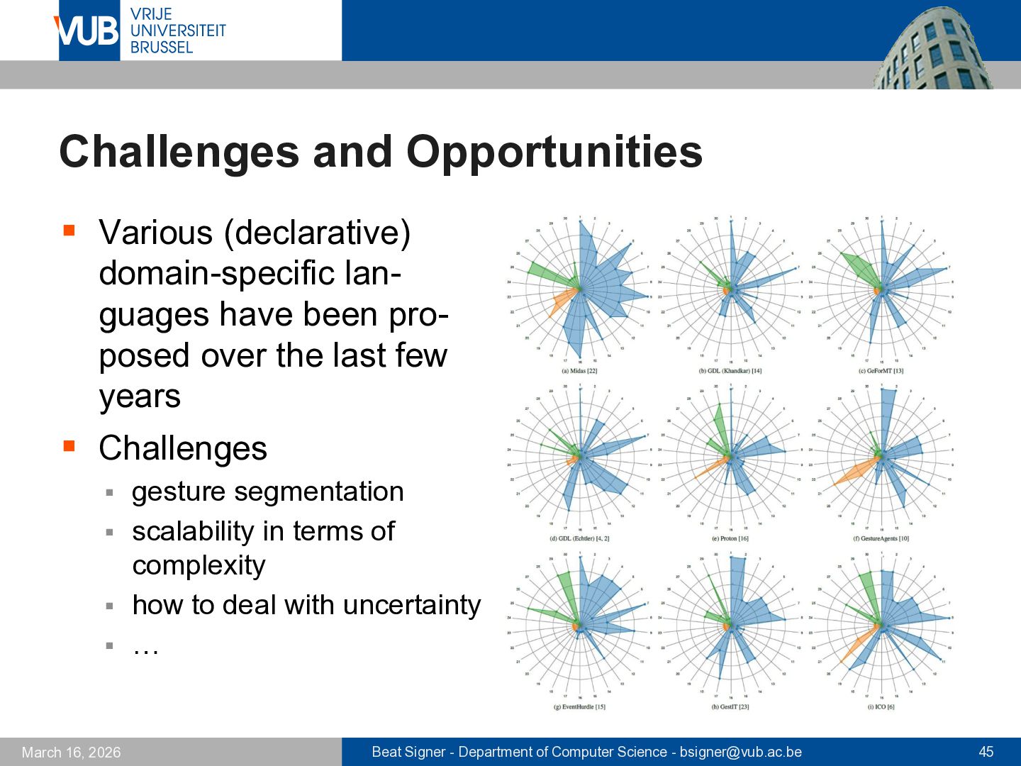 March 16, 2026 Challenges and Opportunities ▪ Various (declarative) domain-specific lan- guages have been pro- posed over the last few years ▪ Challenges ▪ gesture segmentation ▪ scalability in terms of complexity ▪ how to deal with uncertainty ▪ …