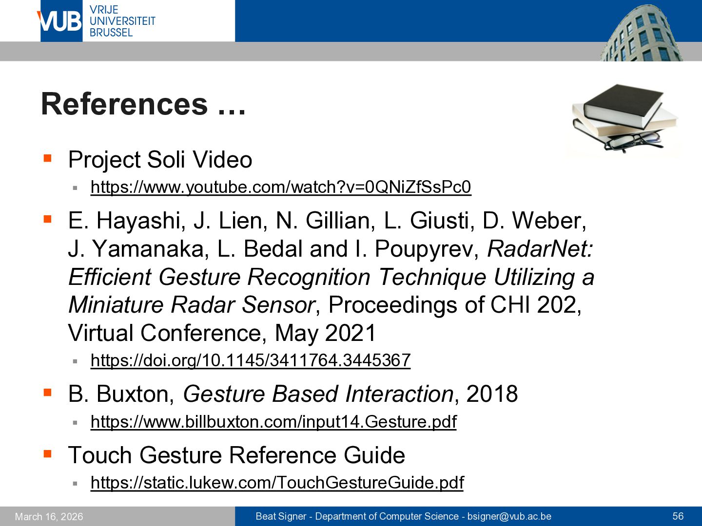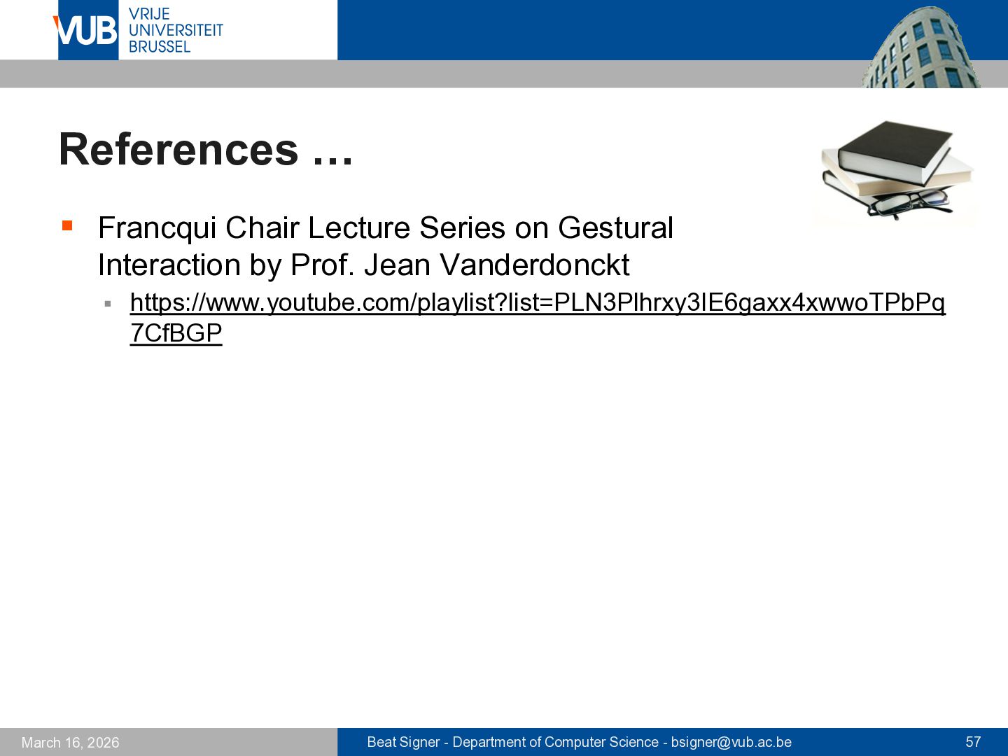 March 16, 2026 References … ▪ Francqui Chair Lecture Series on Gestural Interaction by Prof. Jean Vanderdonckt ▪ https://www.youtube.com/playlist?list=PLN3Plhrxy3IE6gaxx4xwwoTPbPq 7CfBGP