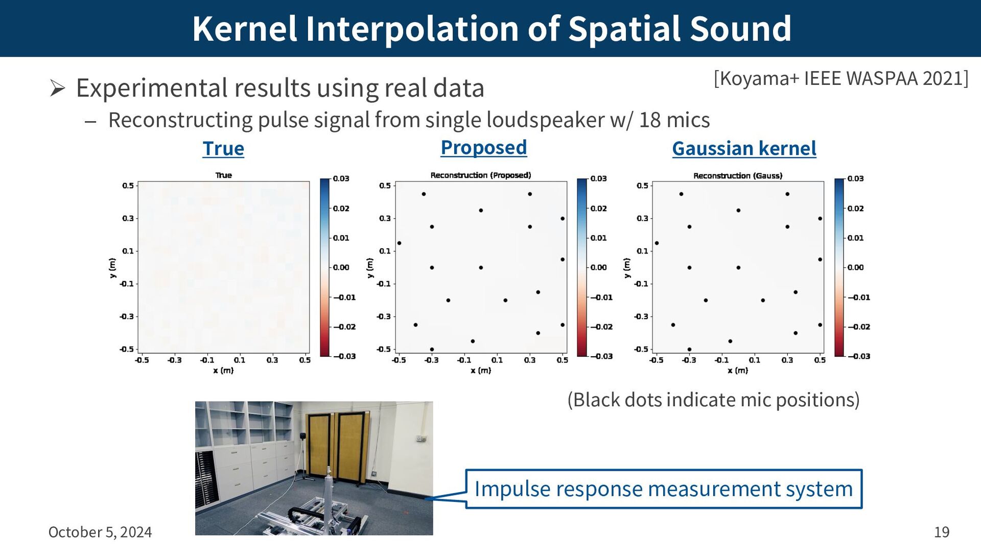data – Reconstructing pulse signal from single loudspeaker w/ 18 mics October 5, 2024 19 True Proposed Gaussian kernel (Black dots indicate mic positions) Impulse response measurement system [Koyama+ IEEE WASPAA 2021]