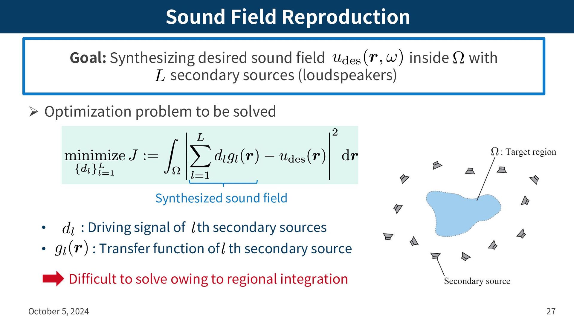 2024 43 Basic Technologies of Sound Field Estimation and Control VR/AR audio Active noise control Local-field recording and reproduction Signal enhancement Visualization/auralization Room acoustic analysis
