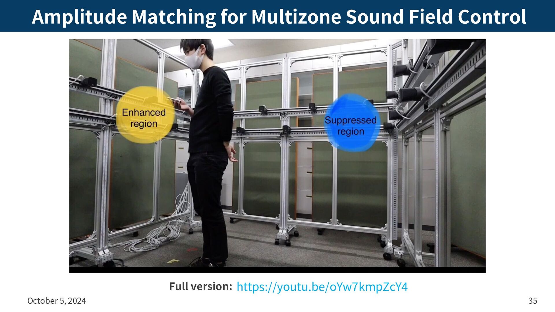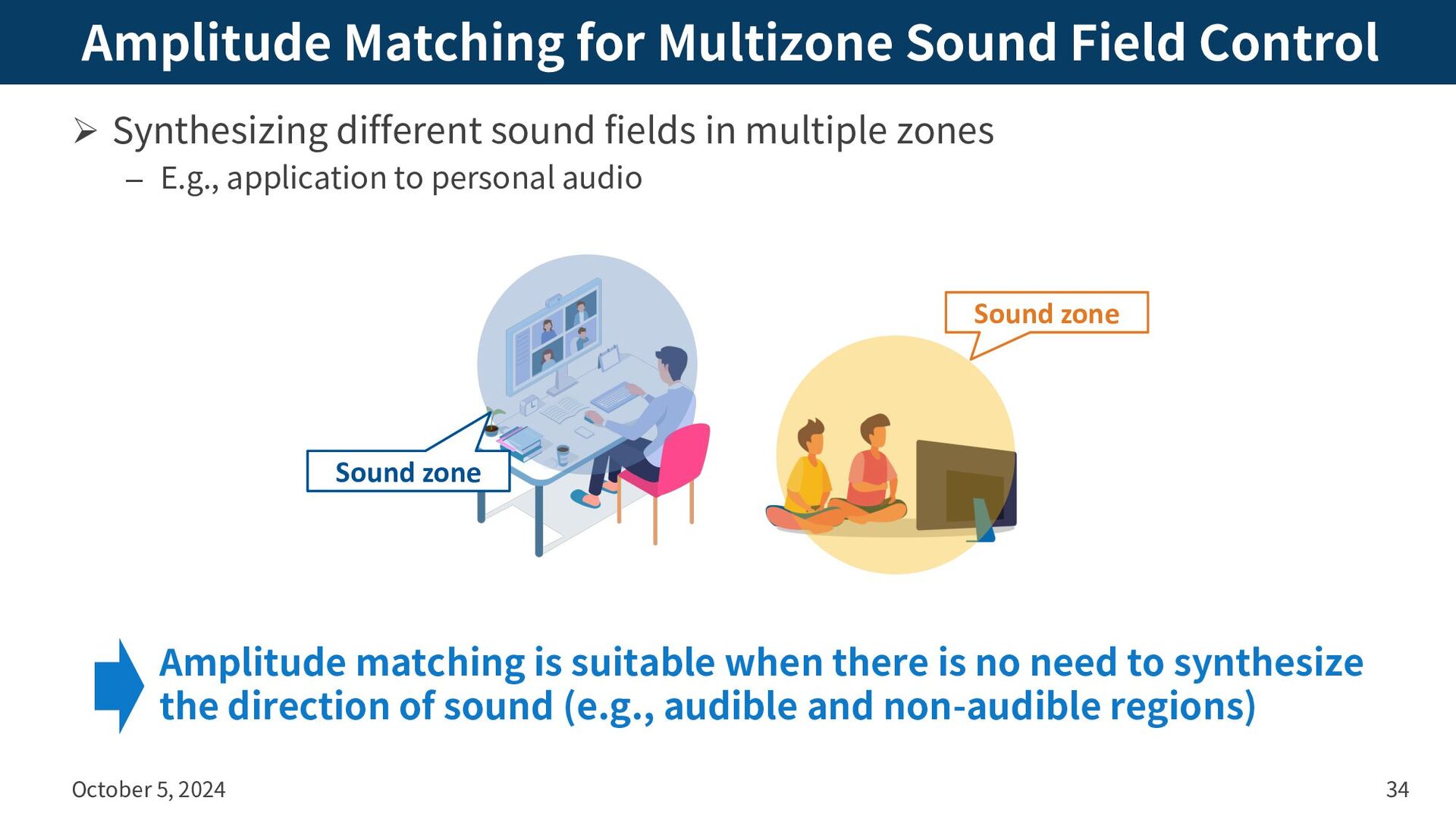 sound fields in multiple zones – E.g., application to personal audio October 5, 2024 34 Sound zone Sound zone Amplitude matching is suitable when there is no need to synthesize the direction of sound (e.g., audible and non-audible regions)