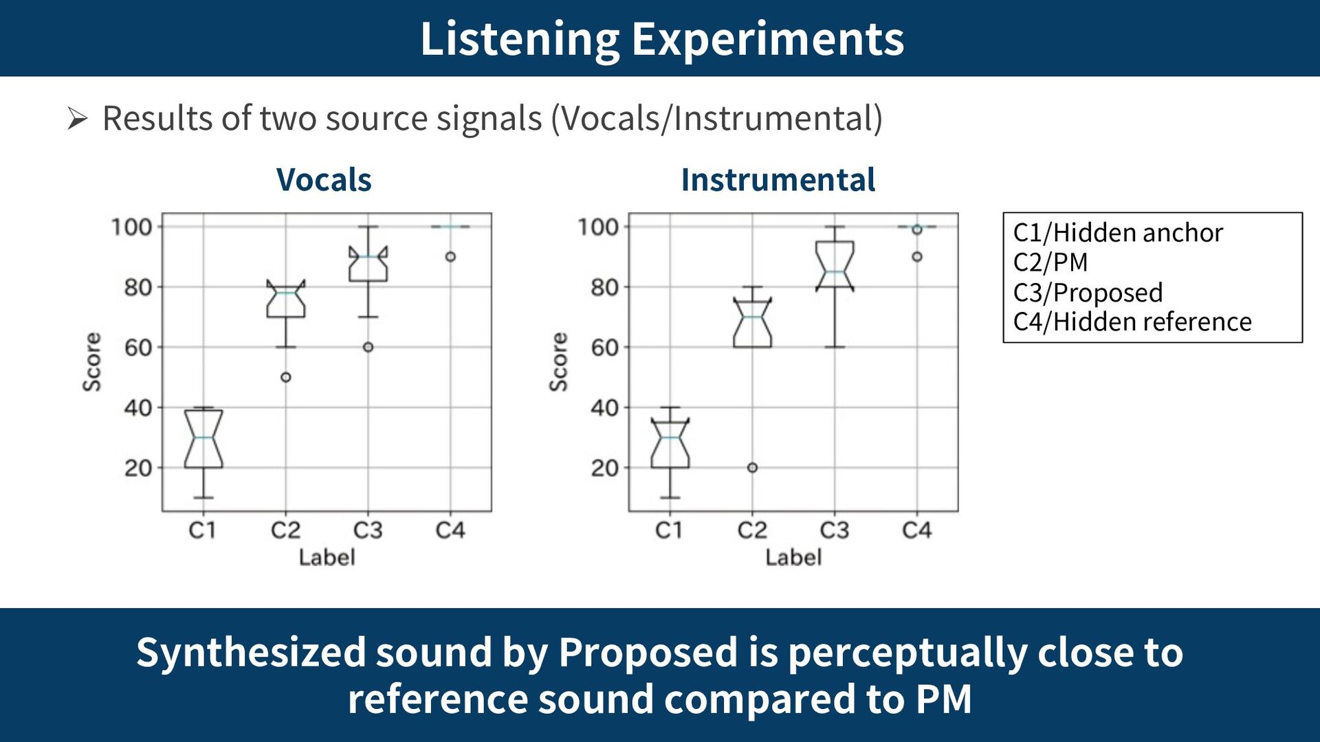5, 2024 41 Vocals Instrumental C1/Hidden anchor C2/PM C3/Proposed C4/Hidden reference Synthesized sound by Proposed is perceptually close to reference sound compared to PM