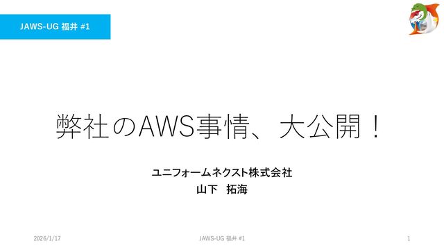 弊社のAWS事情、大公開! ユニフォームネクスト株式会社 山下 拓海 1 JAWS-UG 福井 #1 JAWS-UG 福井