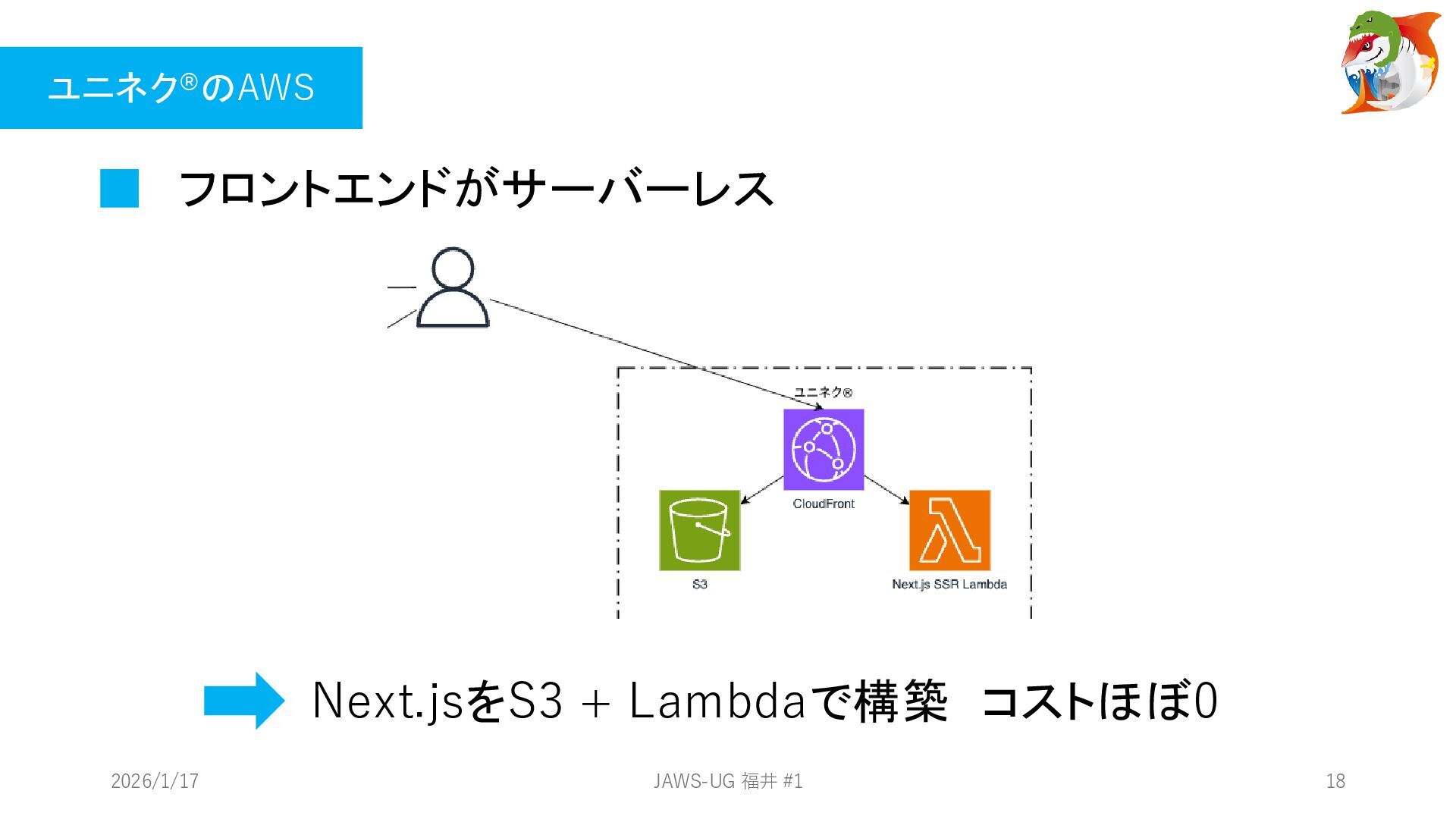 2026/1/17 JAWS-UG 福井 #1 18 ユニネク®︎のAWS フロントエンドがサーバーレス Next.jsをS3 + Lambdaで構築