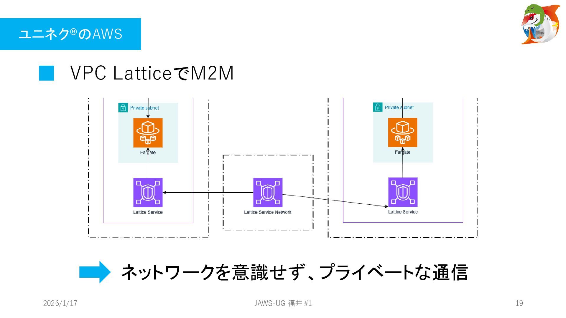 2026/1/17 JAWS-UG 福井 #1 19 ユニネク®︎のAWS VPC LatticeでM2M ネットワークを意識せず、プライベートな通信