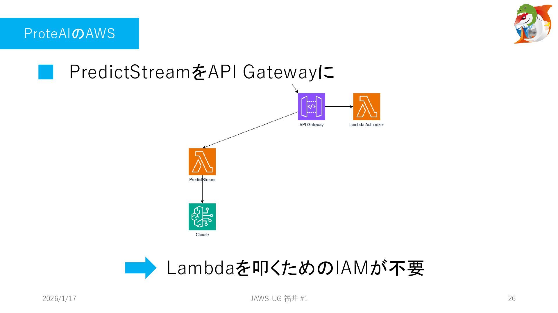 2026/1/17 JAWS-UG 福井 #1 26 ProteAIのAWS PredictStreamをAPI Gatewayに Lambdaを叩くためのIAMが不要