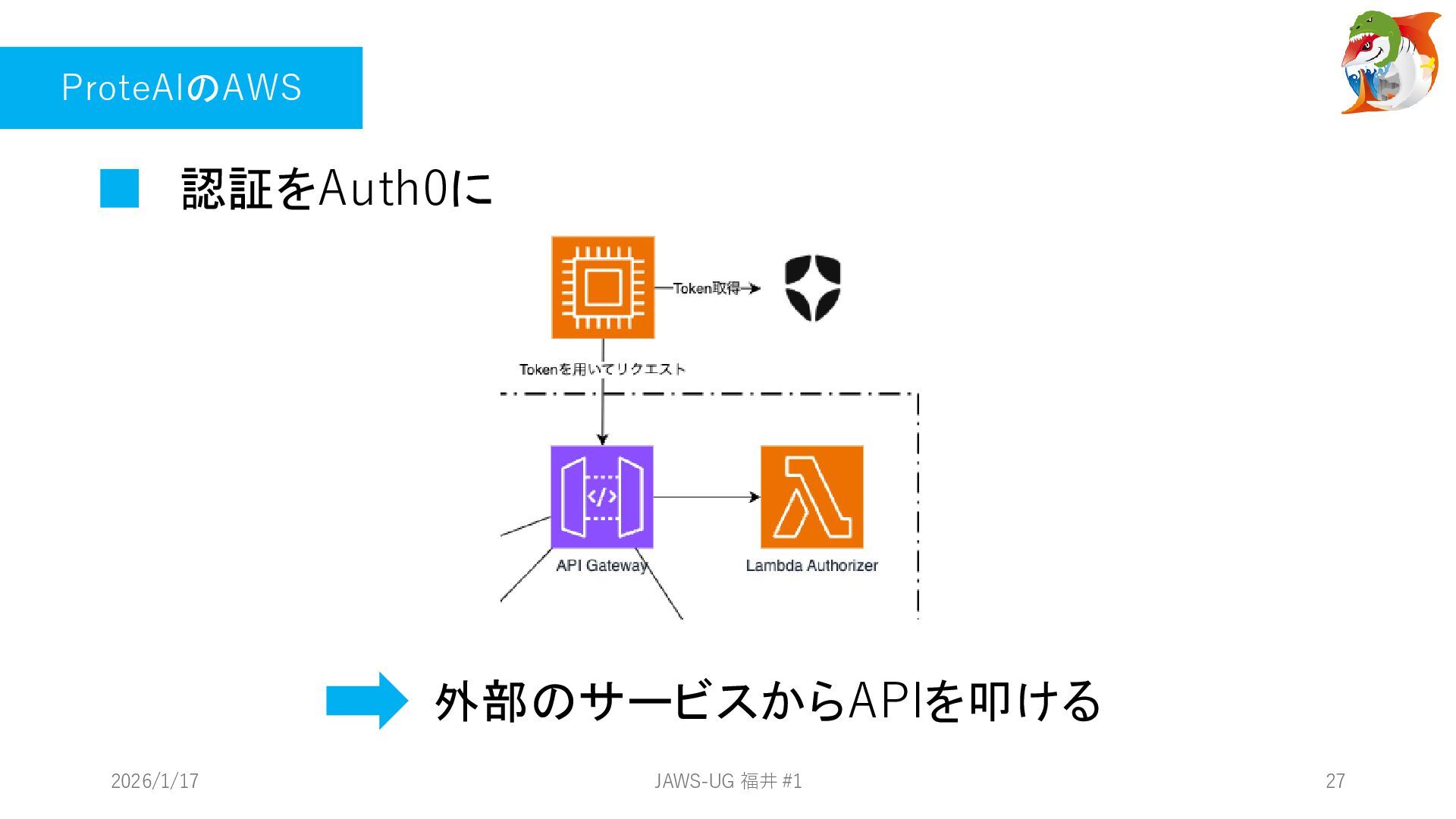 2026/1/17 JAWS-UG 福井 #1 27 ProteAIのAWS 認証をAuth0に 外部のサービスからAPIを叩ける