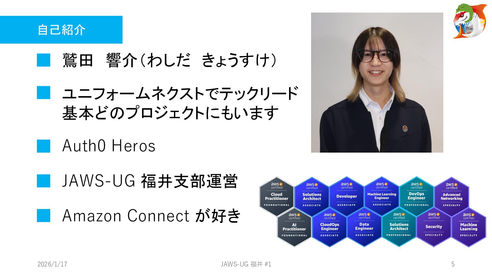Amazon Connect が好き Auth0 Heros 自己紹介 JAWS-UG 福井支部運営