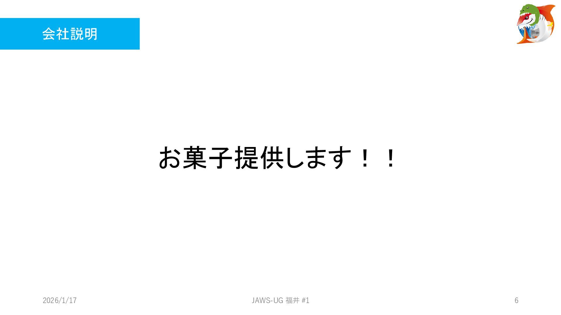 2026/1/17 JAWS-UG 福井 #1 6 会社説明 お菓子提供します!!