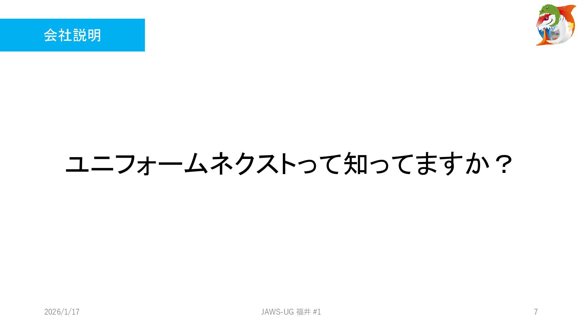 2026/1/17 JAWS-UG 福井 #1 7 会社説明 ユニフォームネクストって知ってますか?