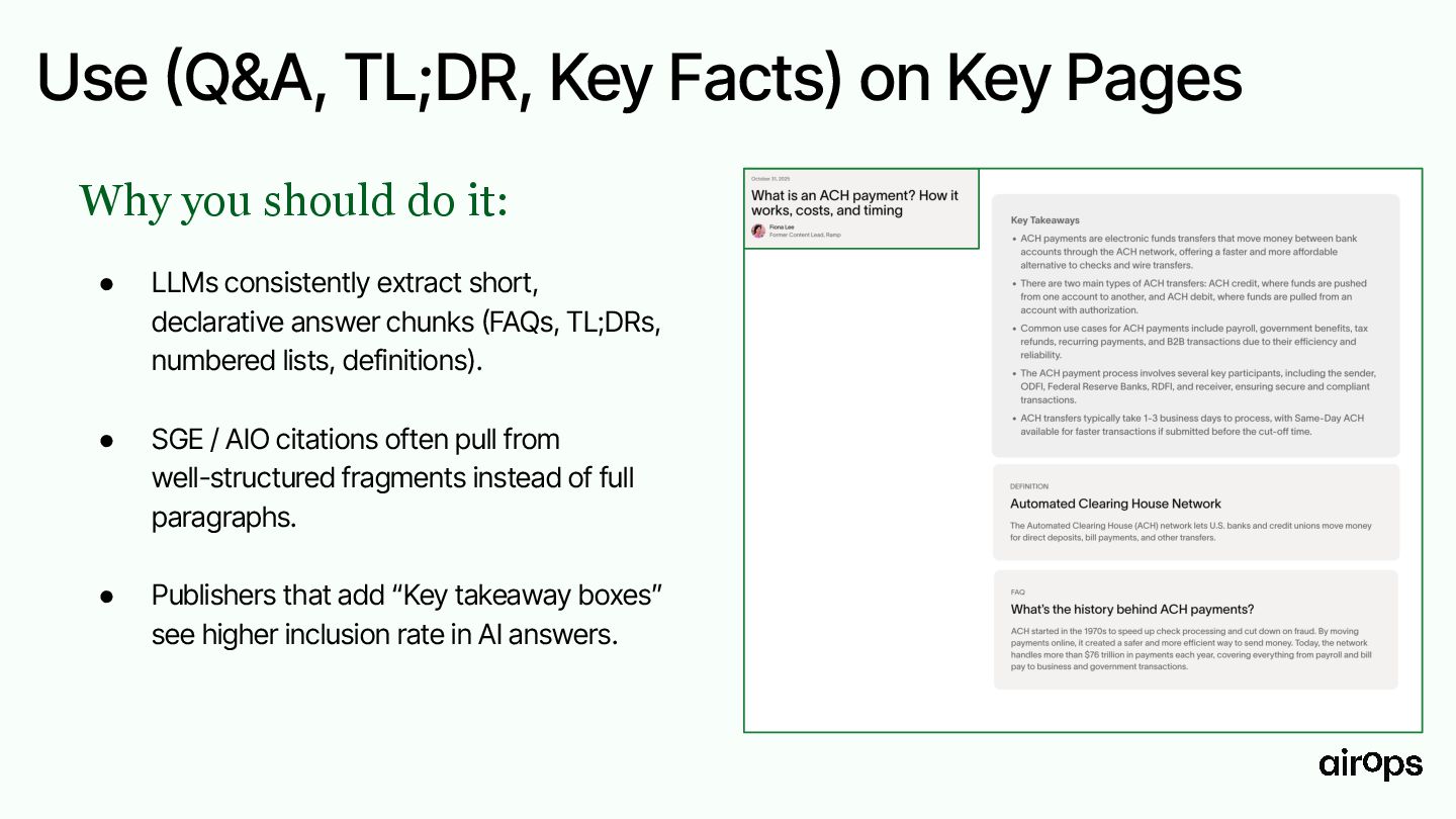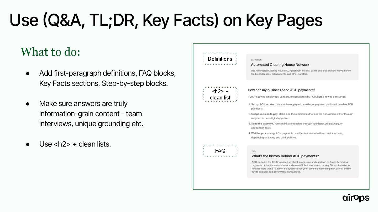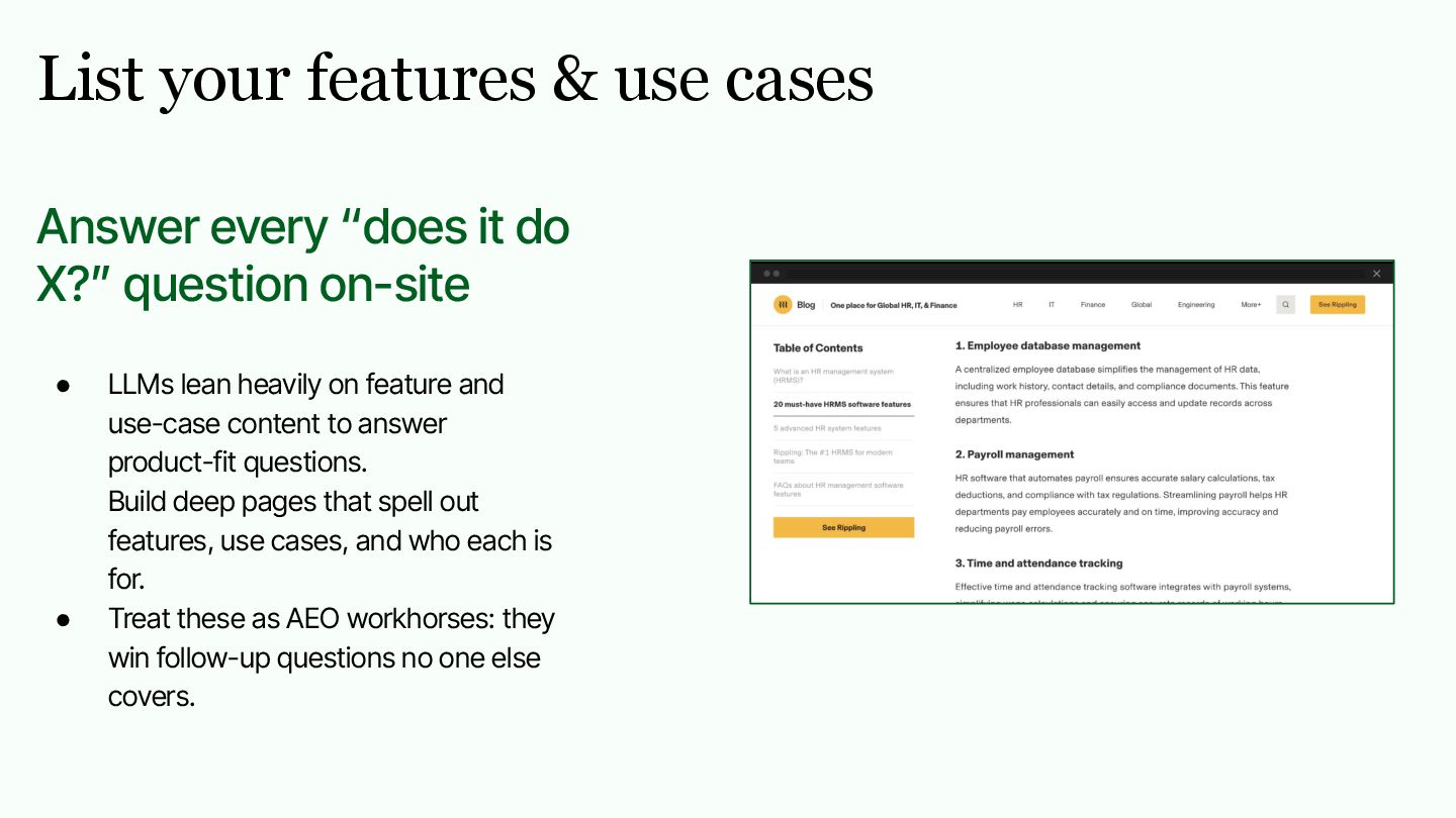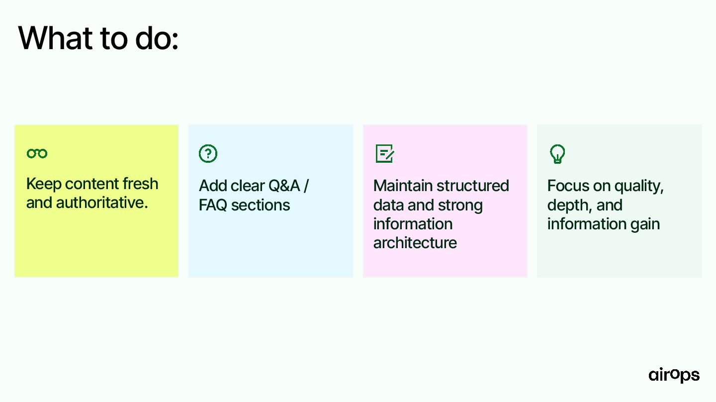 (+ Offer, AggregateRating) Describes your company/site: name, logo, URLs, social profiles, site search. Core entity signal. Helps Google/Bing/LLMs understand who you are and connect you across the web. ⭐Article / BlogPosting (+ Person author) FAQPage / QAPage HowTo Describes products/SaaS/apps, including price, availability, ratings, etc. Critical for ecommerce/SaaS. Drives product rich results and feeds AI commerce experiences; strong CTR evidence. (Google for Developers) Marks content as an article with headline, date, author, publisher. Helps systems understand topical content + who wrote it (E-E-A-T). Good for news, blogs, thought leadership. (Google for Developers) Describes products/SaaS/apps, including price, availability, ratings, etc. Once huge for rich snippets, now heavily restricted in Google SERPs; still useful as machine-readable Q&A for AI answers. (SearchPilot) Step-by-step instructions for tasks. Very aligned with how AI and rich results present procedures (steps, tools, time). Great for docs/help content. (Google for Developers) ⭐Review / AggregateRating Star ratings and review information for products/services/content. Strong CTR driver when stars show; very persuasive in both classic SERPs and AI-commerce contexts. (SearchPilot) Schema Type What it is Notes