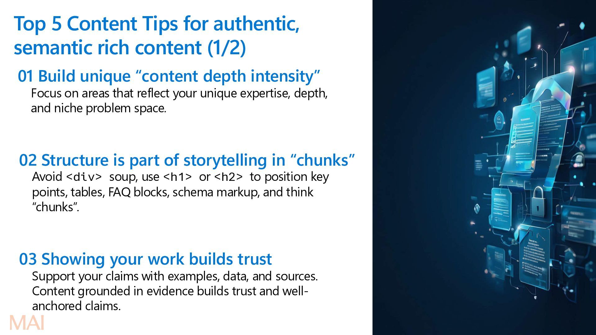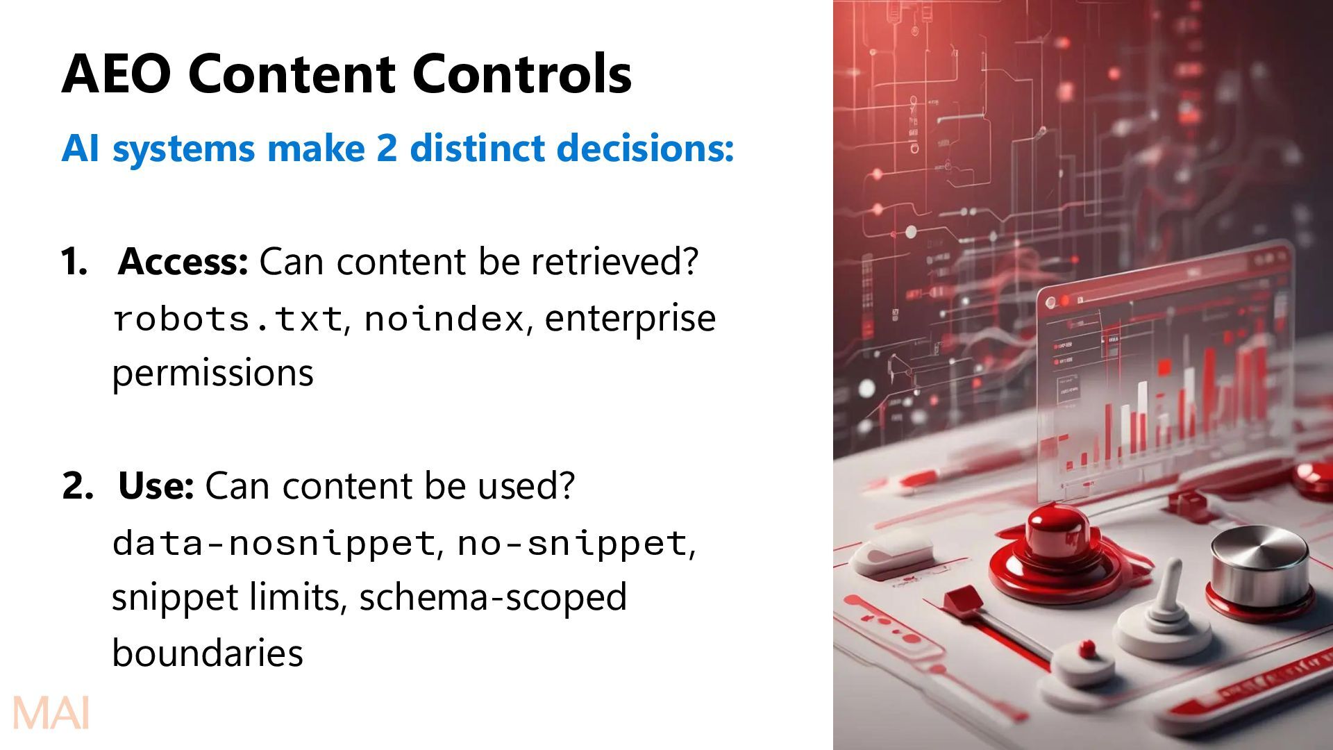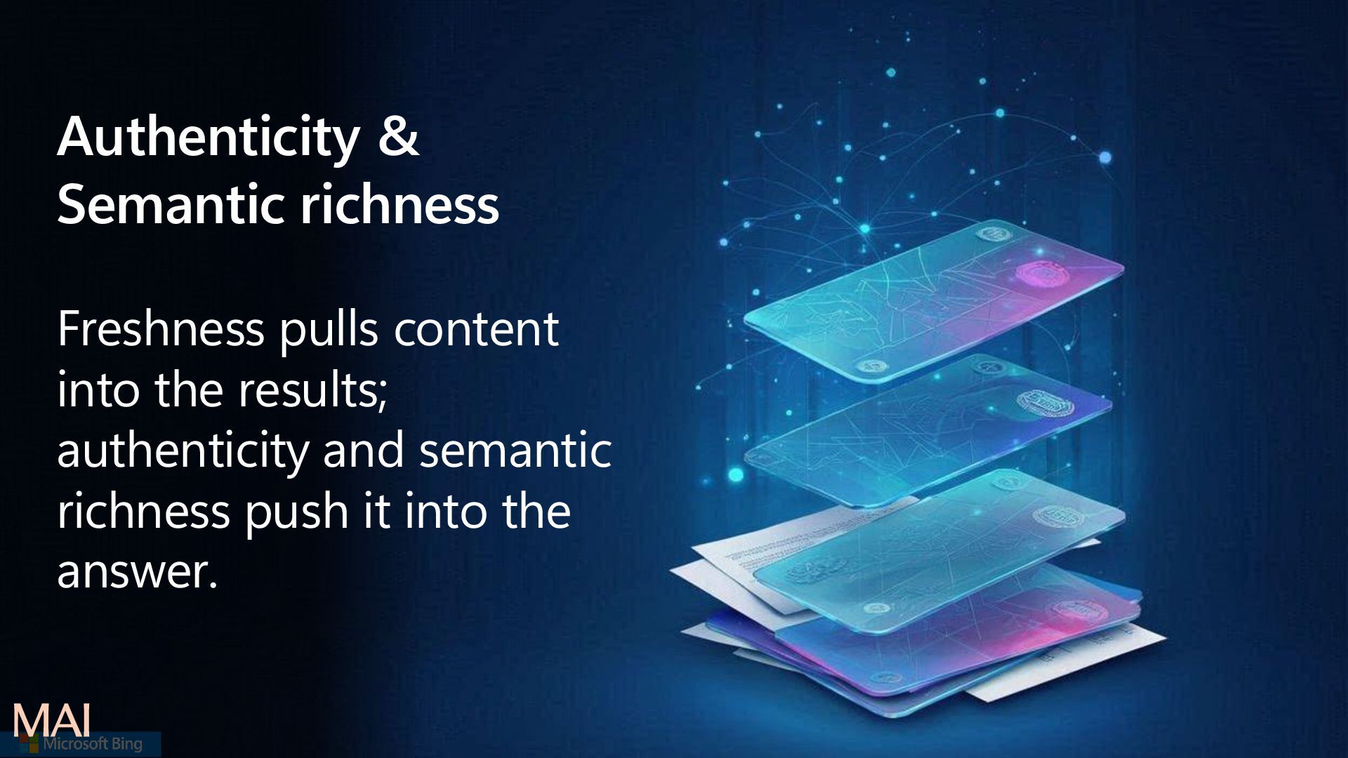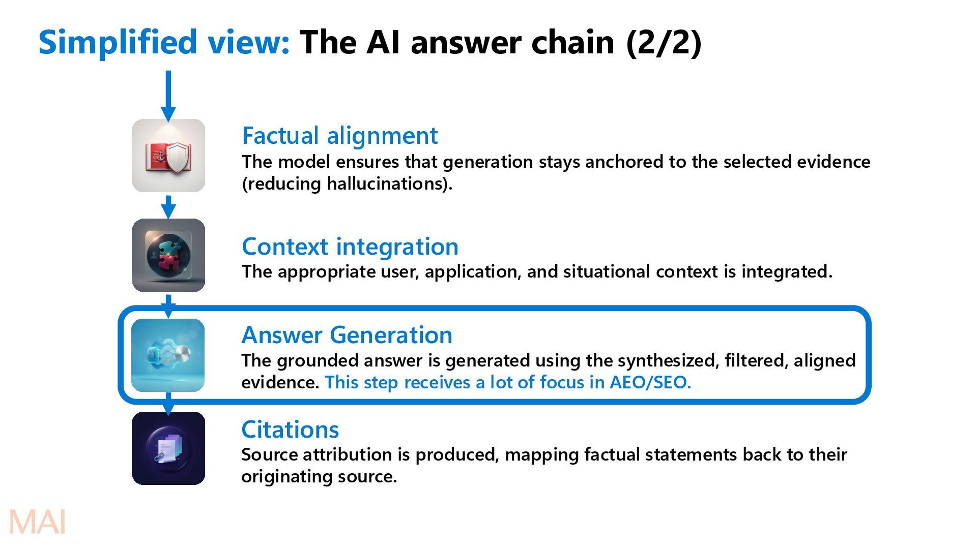 submits a query or a task Retrieval (multi-source) Relevant content is fetched from available sources (usually the index). Safety starts even at this stage. Ranking Retrieved content scored & ordered by relevance, quality, authority, freshness Evidence synthesis Top-ranked items are merged, de-duplicated, summarized, and structured into clean evidence blocks. Safety filtering Evidence is checked against safety, compliance, and policy constraints (PII, harmful content, etc.)