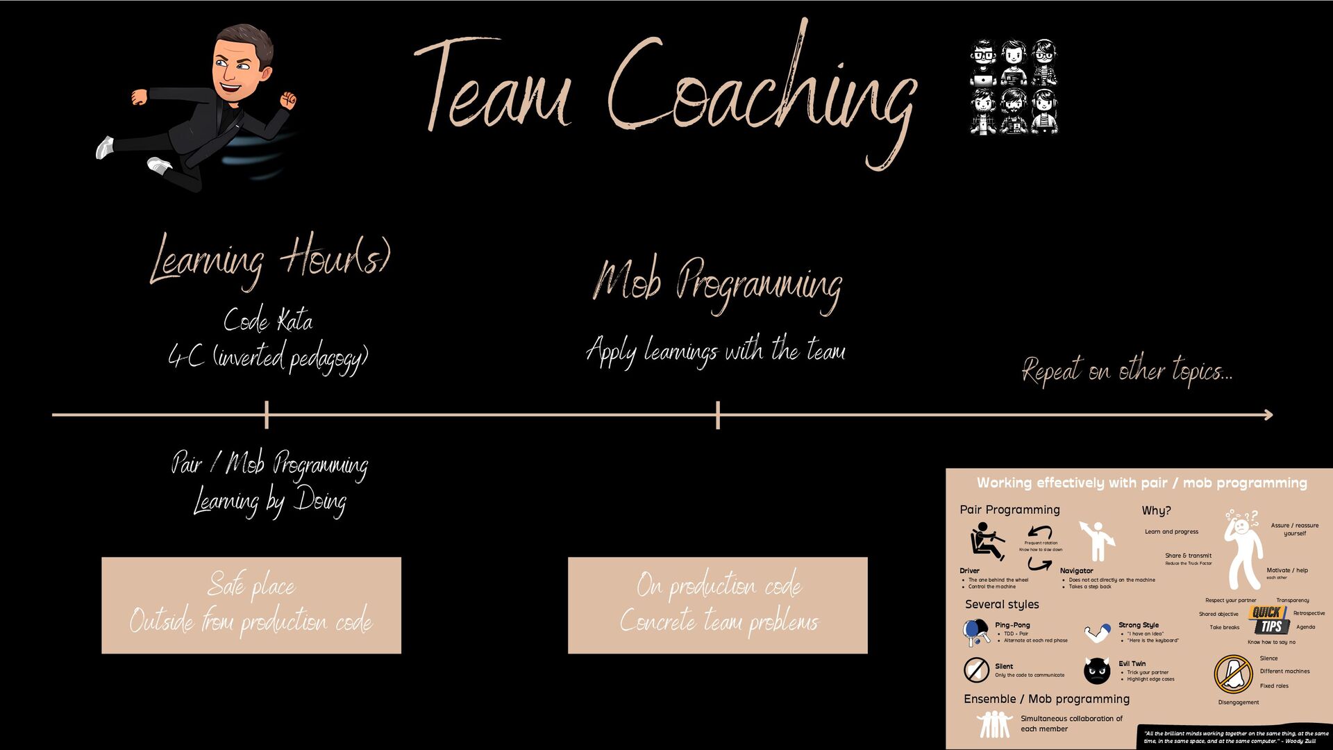 - Training teams on practices that enable them to deliver more efficiently (Learning Hours, Coding Dojos, Mob Programming)