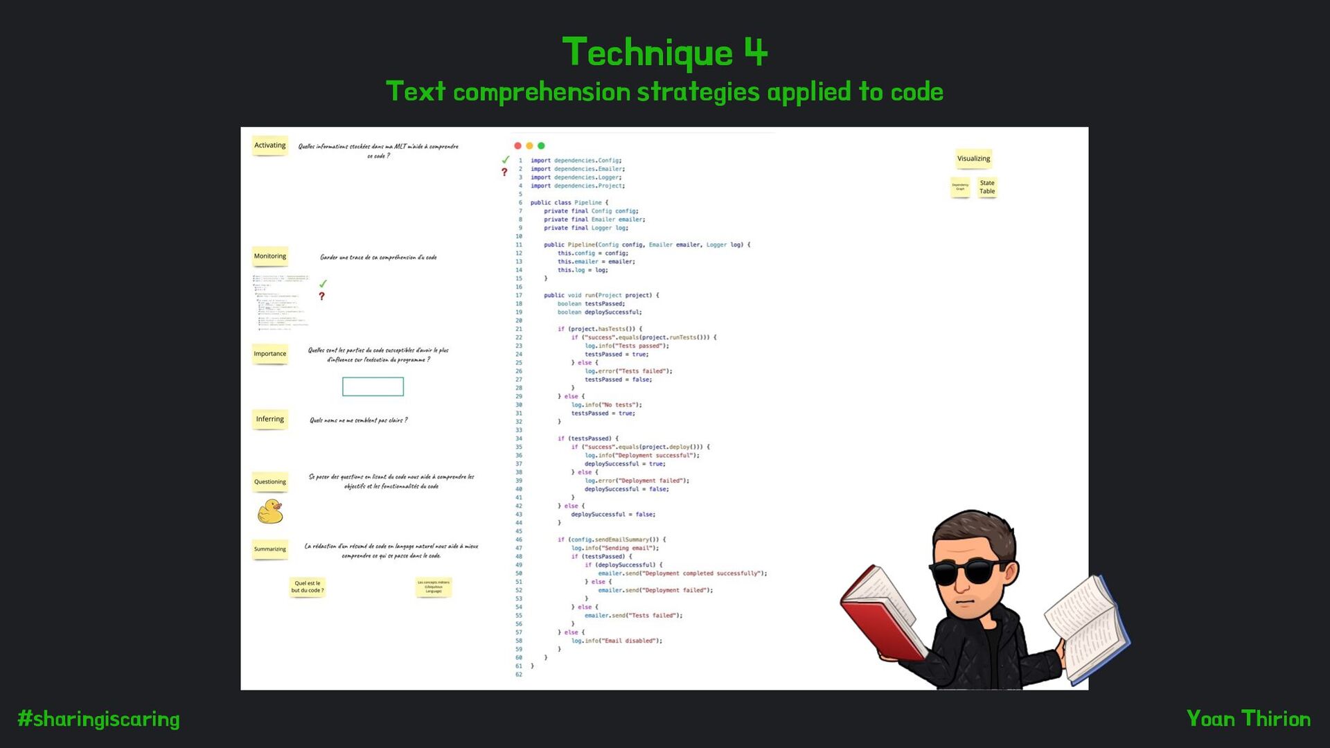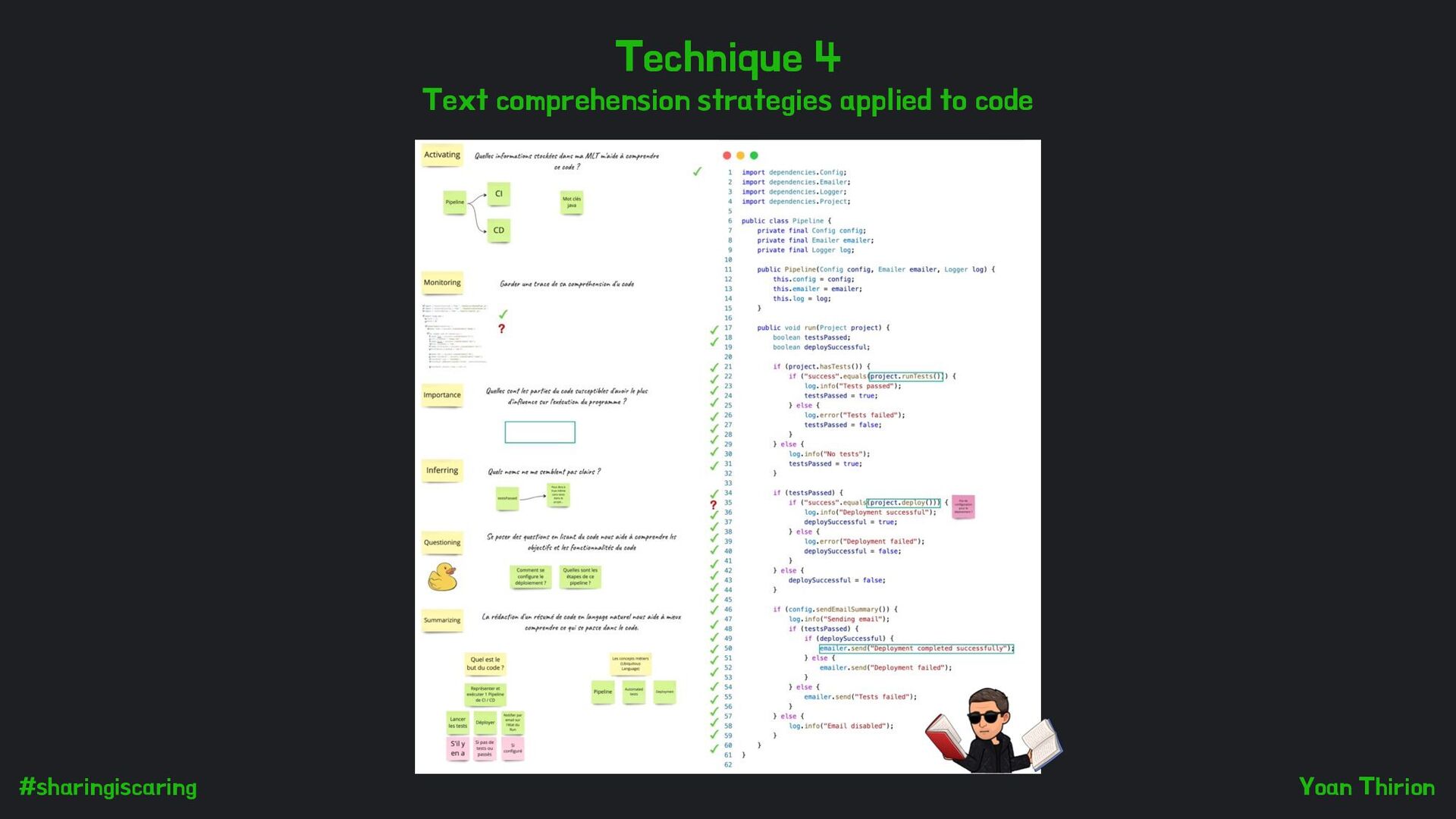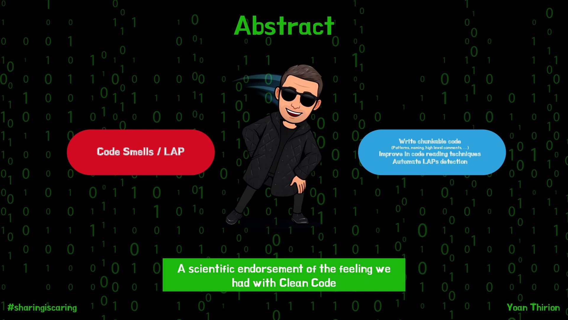 code (Patterns, naming, high level comments, …) Improve in code reading techniques Automate LAPs detection A scientific endorsement of the feeling we had with Clean Code