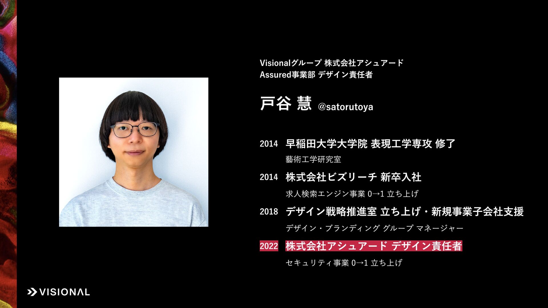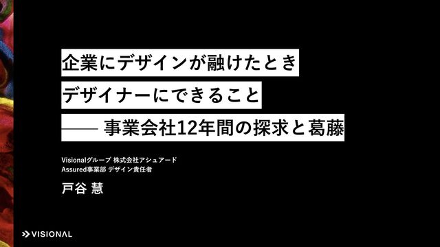 Designship 2025 にて、株式会社アシュアード Assured事業部 デザイン責任者 戸谷が「企業にデザインが融けたとき、デザイナーにできること。事業会社12年間の探究と葛藤」のタイトルで登壇した際の資料です。