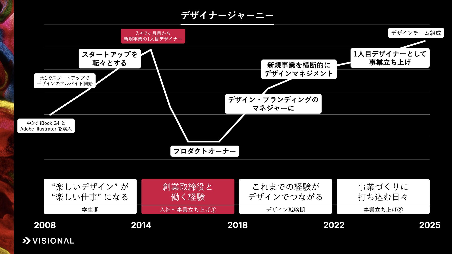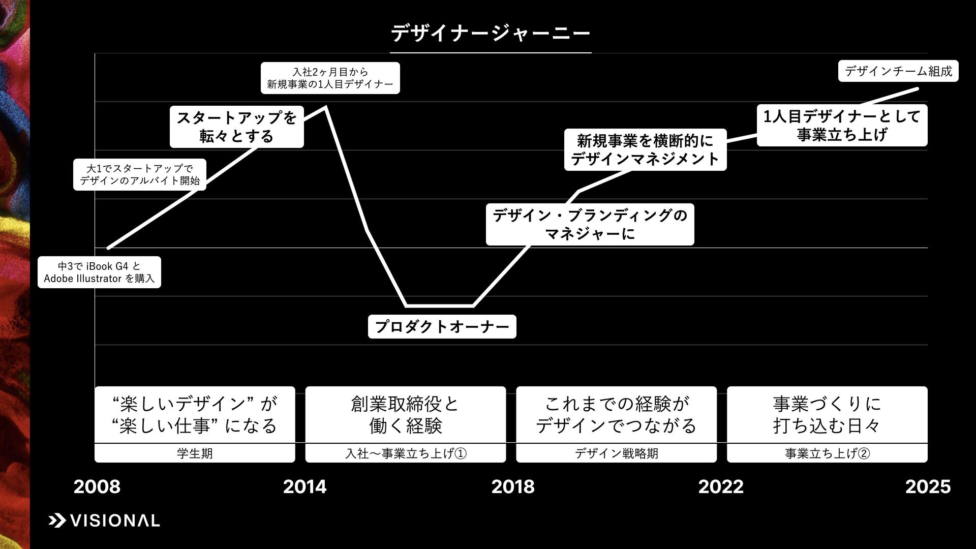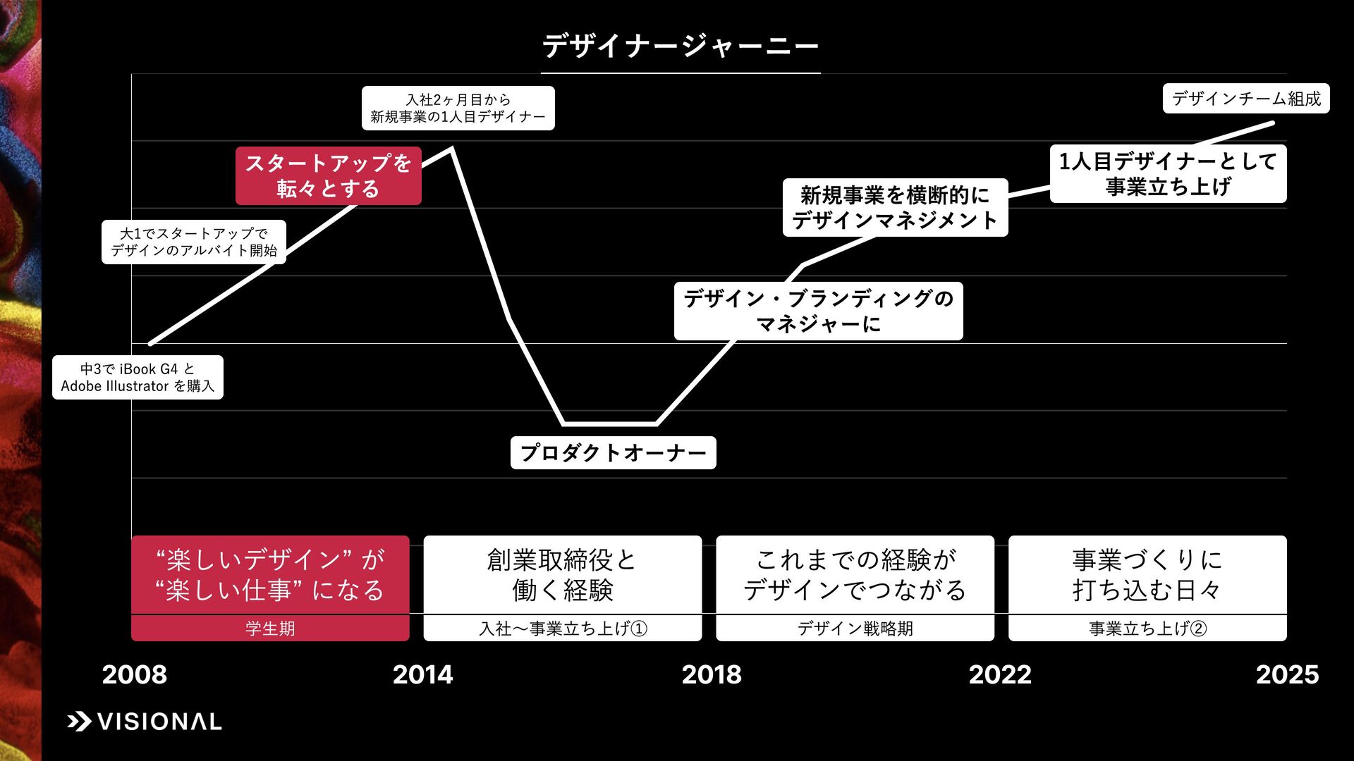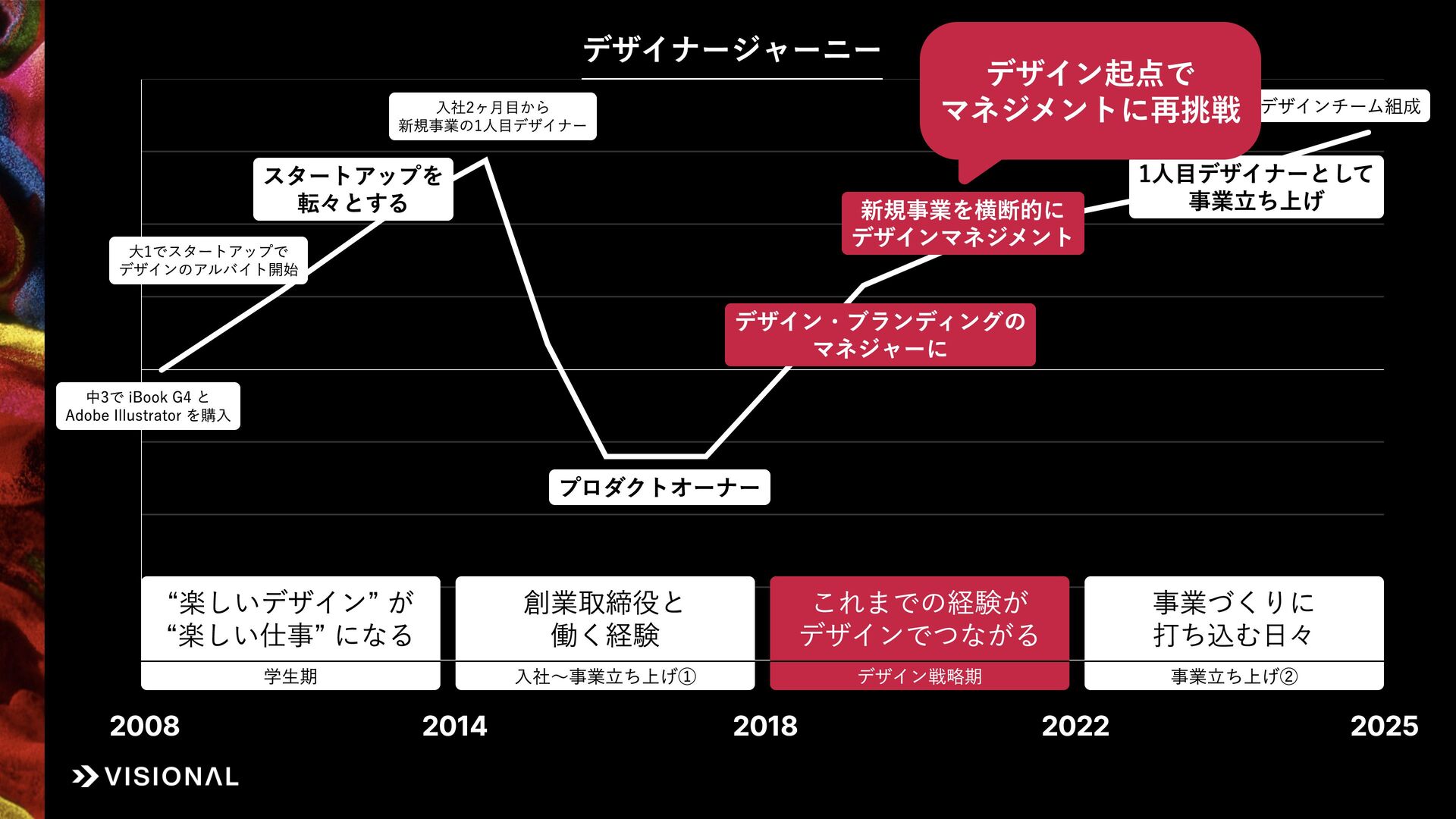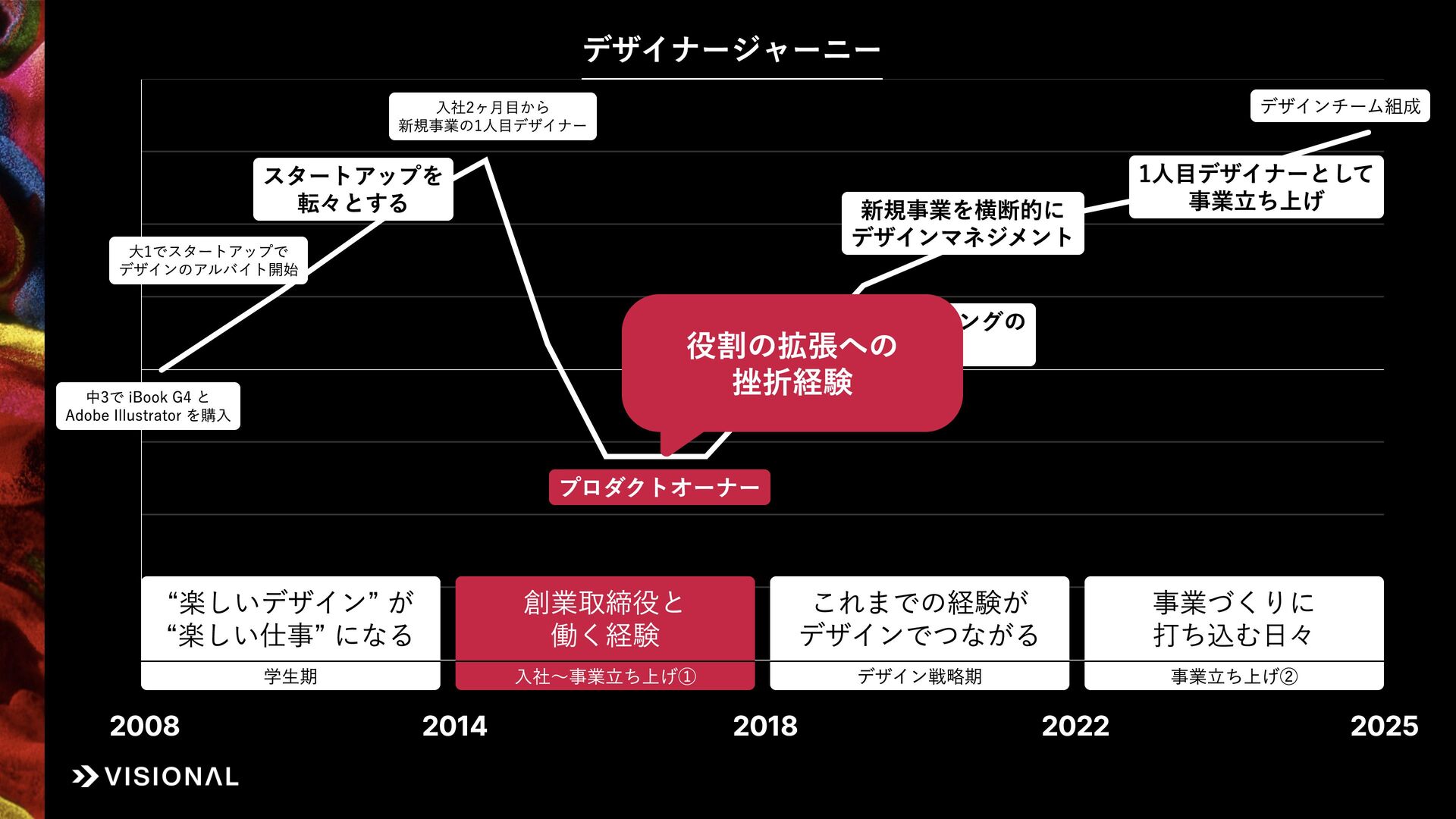 私自身、新卒入社から12年間、UIデザイナー、プロダクトオーナー、リクルーター、デザイン責任者と、役割を変え続けて事業づくりに挑戦してきました。